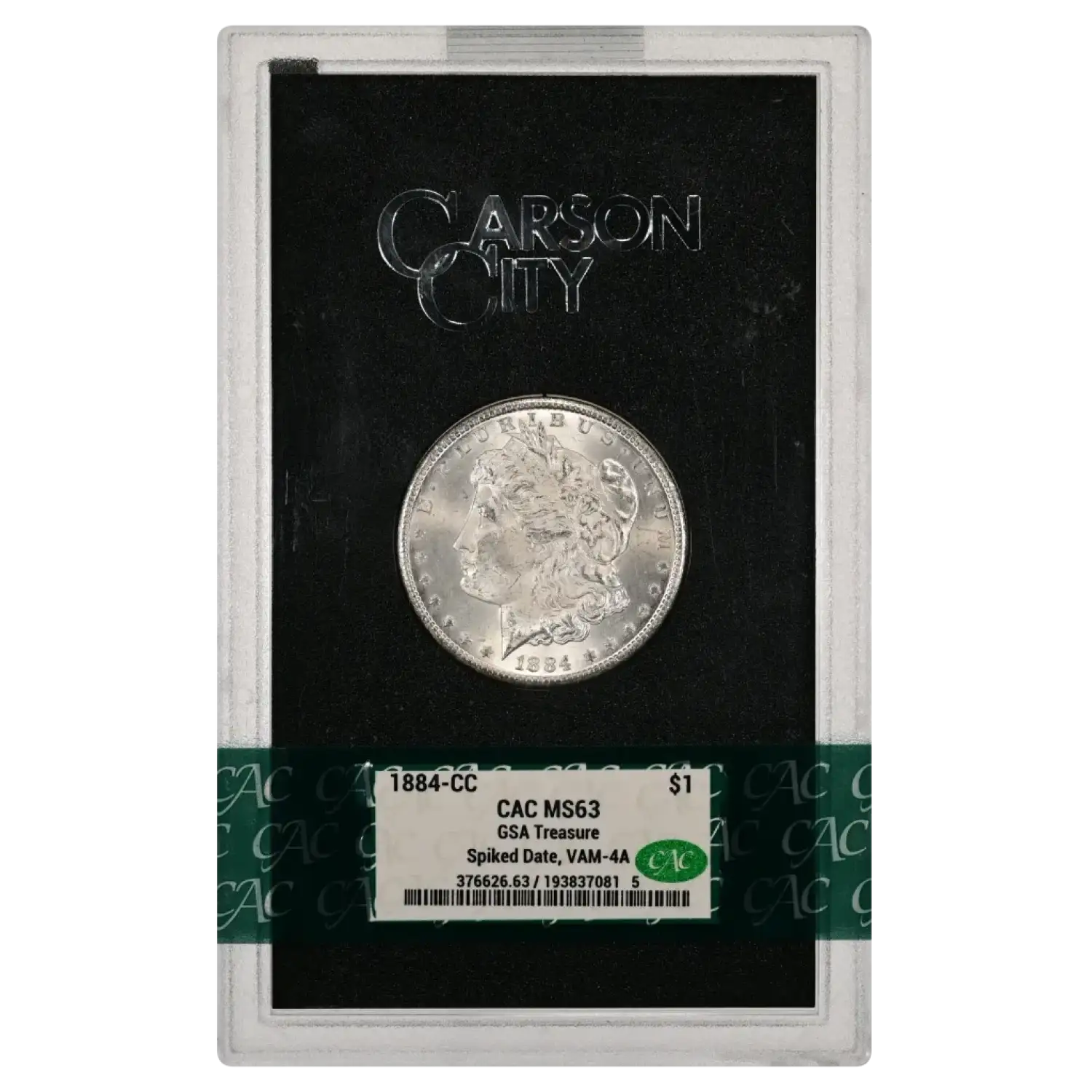 1884-CC GSA Treasure Morgan Silver Dollar CAC Grading (CACG) MS 63 - VAM-4A Spiked Date