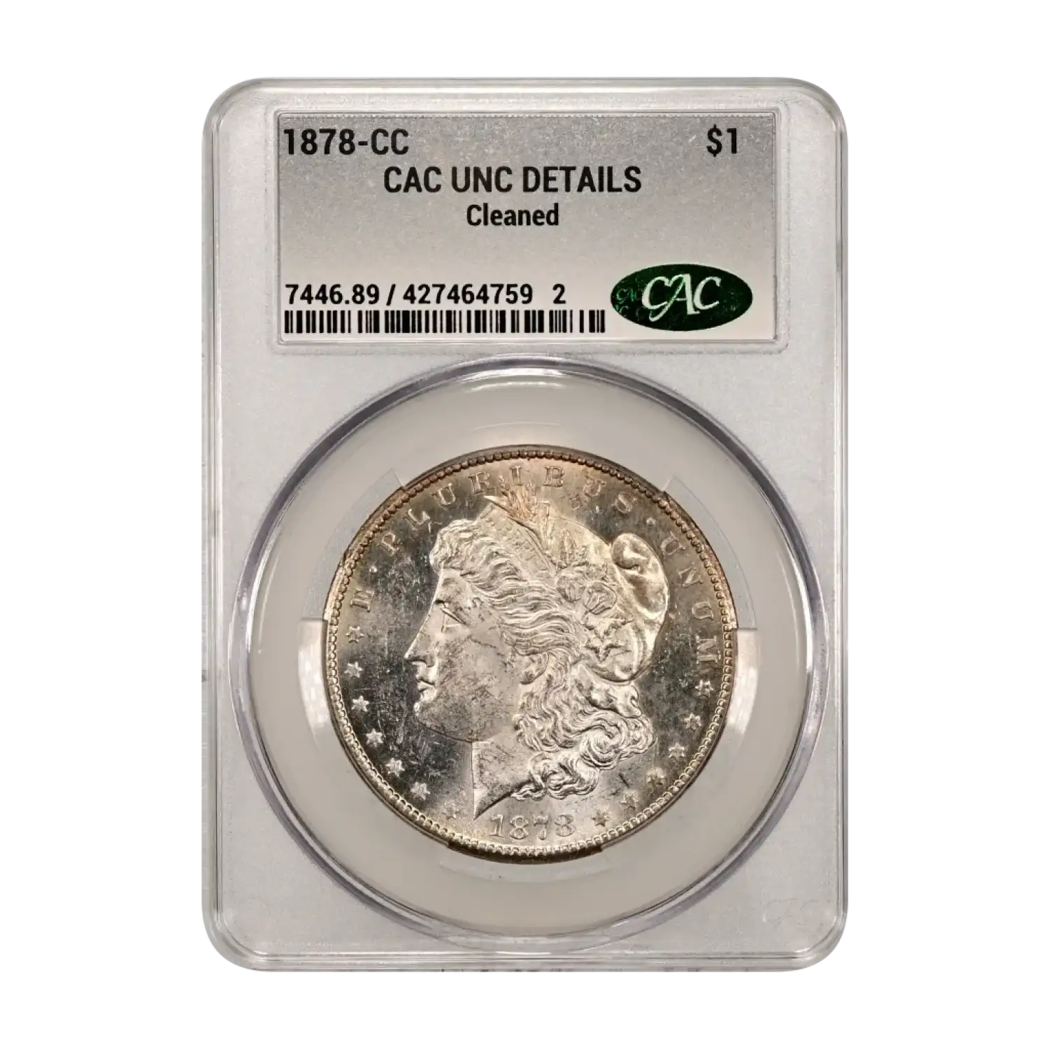 1878 CC Morgan Silver Dollar CAC Grading (CACG) UNC Details (cleaned) - VAM-2A Die Chip Nostril