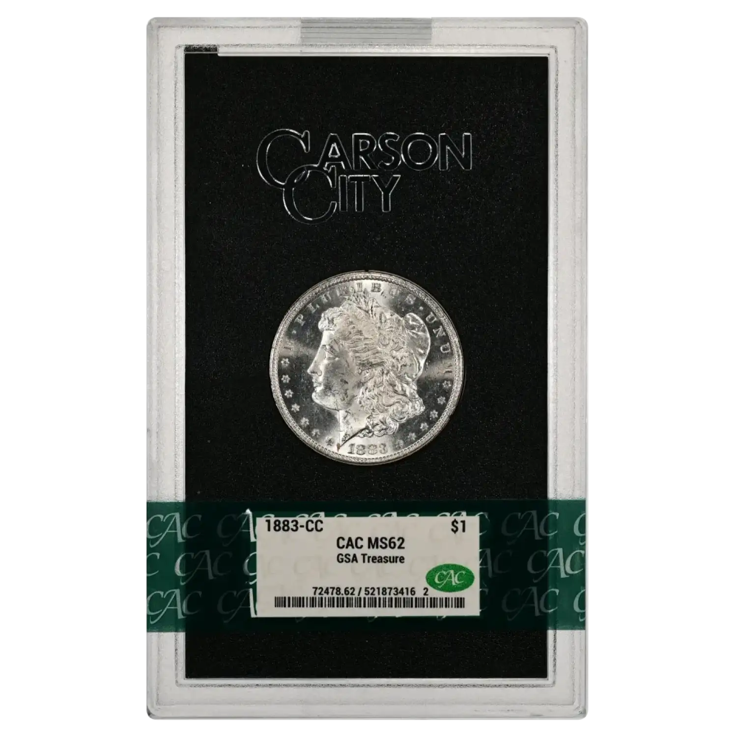 1883-CC GSA Treasure Morgan Silver Dollar CAC Grading (CACG) MS 62