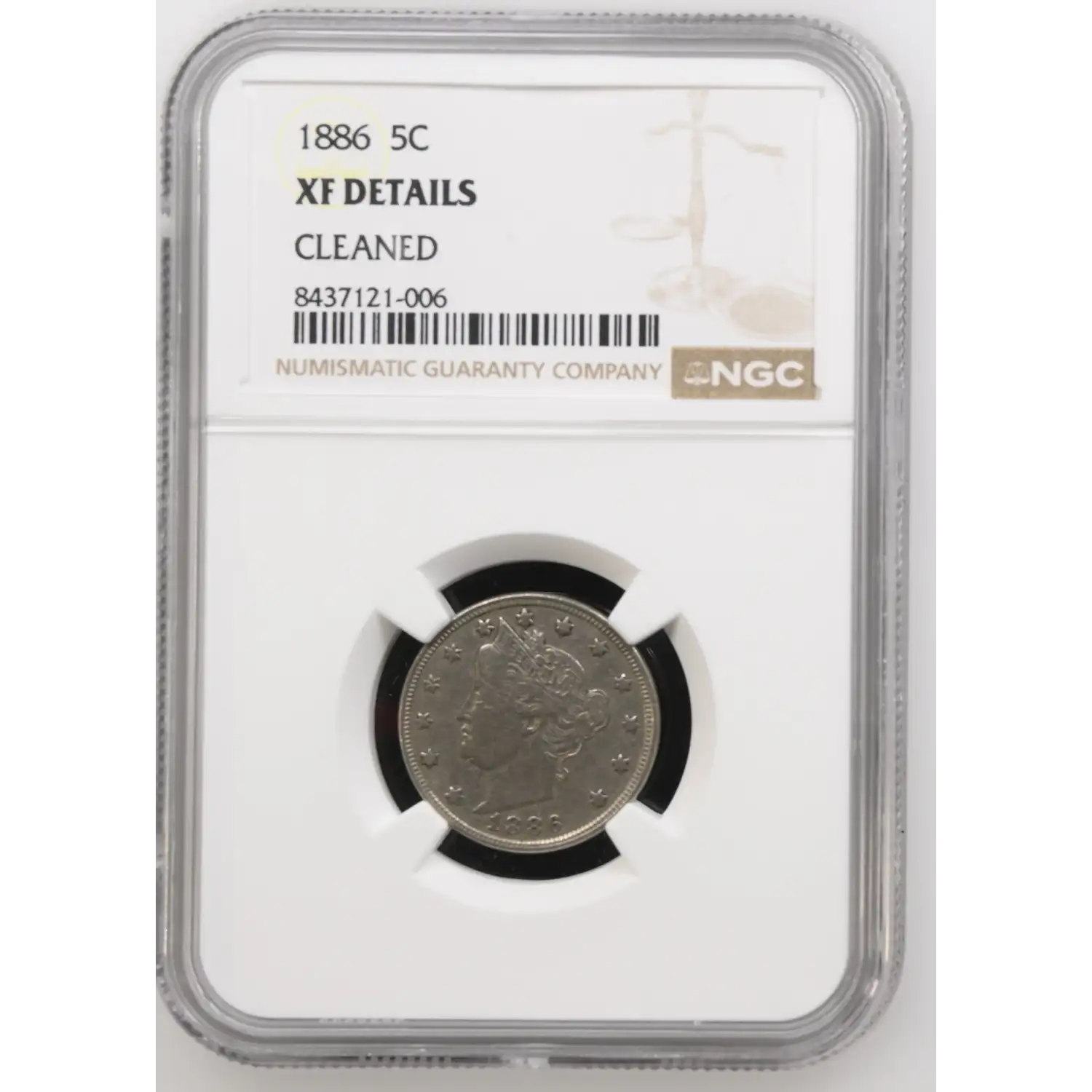 1886 Liberty Head V Nickel NGC XF Details
