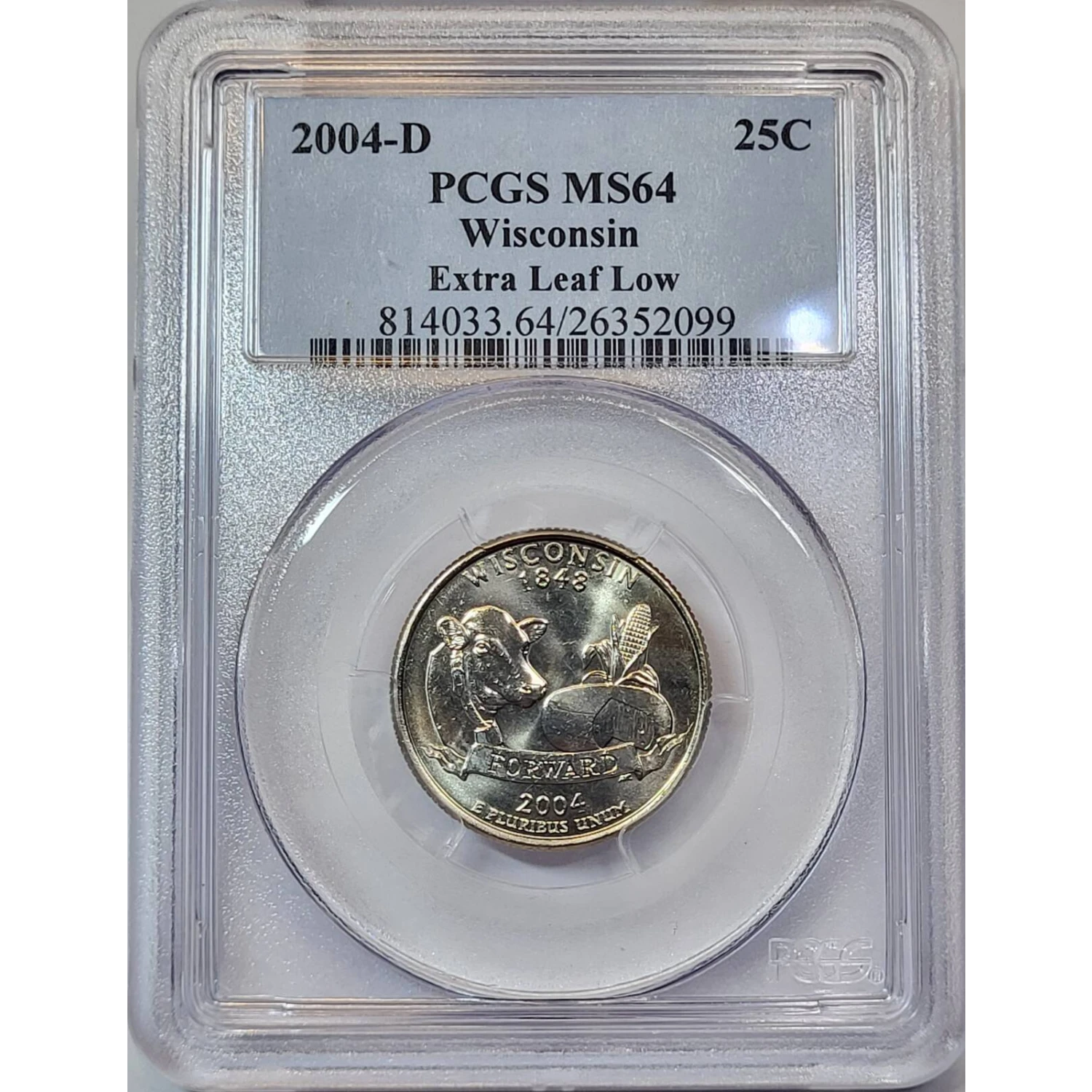 2004-D State Quarter PCGS MS-64 Wisconsin - Extra Leaf Low