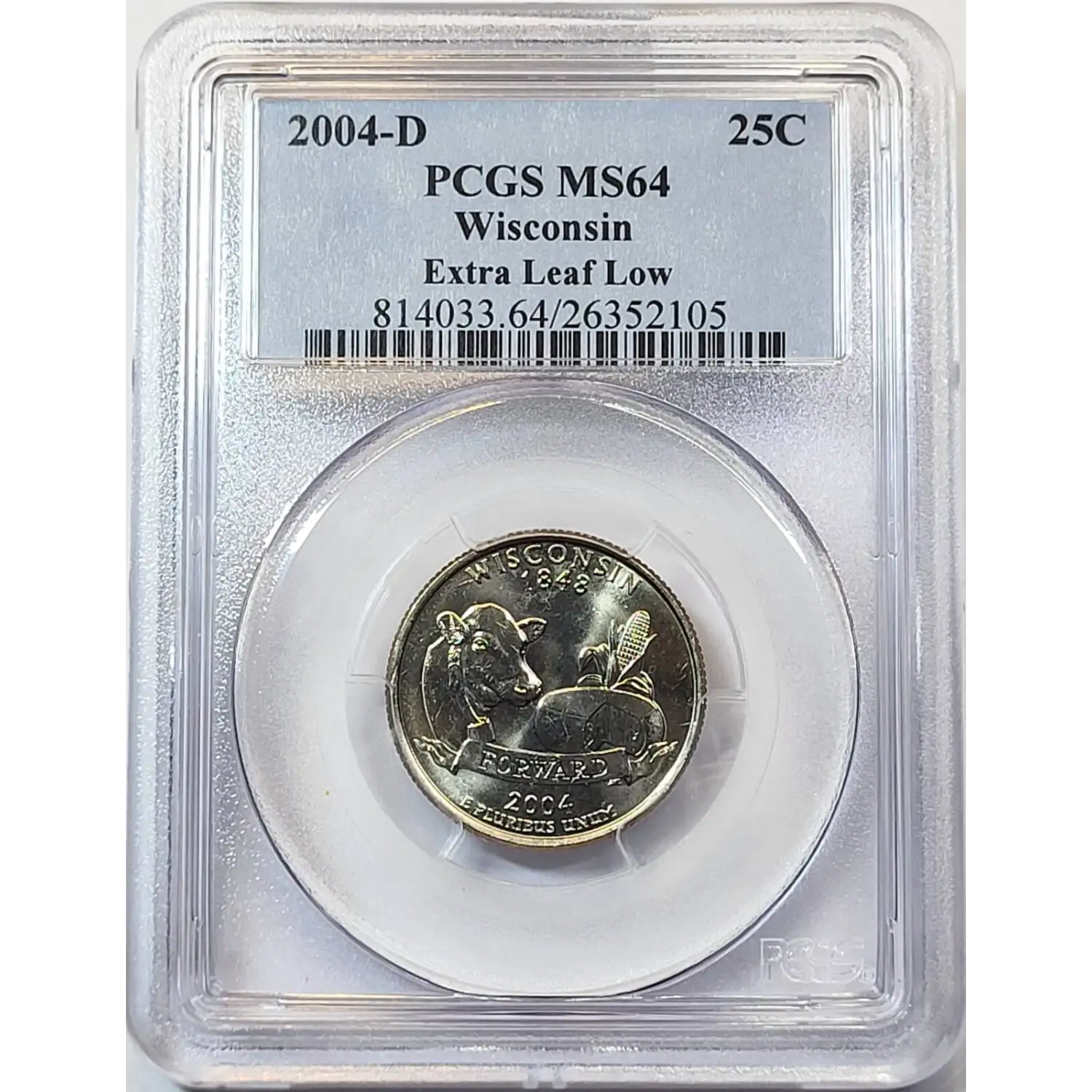 2004-D State Quarter PCGS MS-64 Wisconsin - Extra Leaf Low