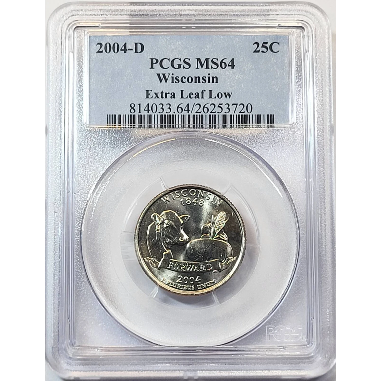 2004-D State Quarter PCGS MS-64 Wisconsin - Extra Leaf Low