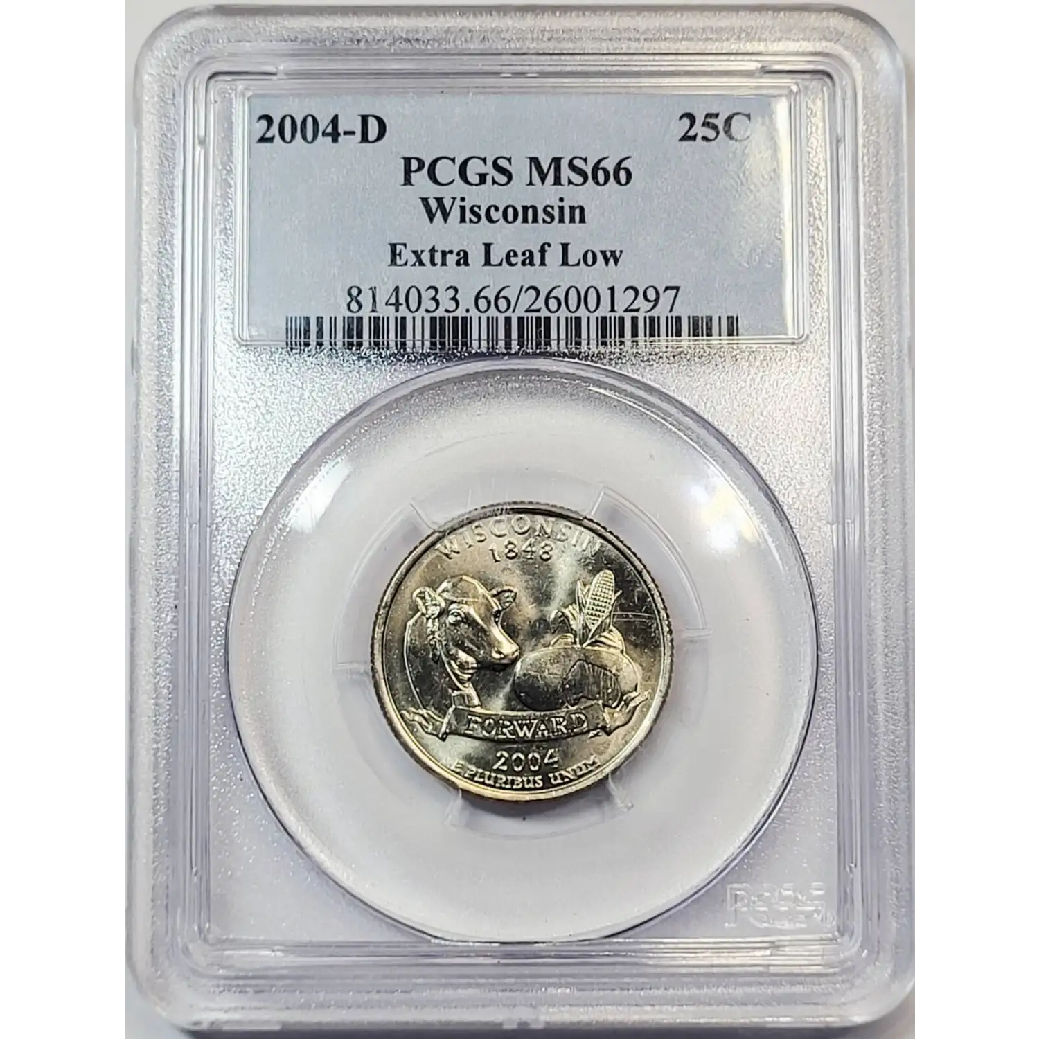 2004-D State Quarter PCGS MS-66 Wisconsin - Extra Leaf Low