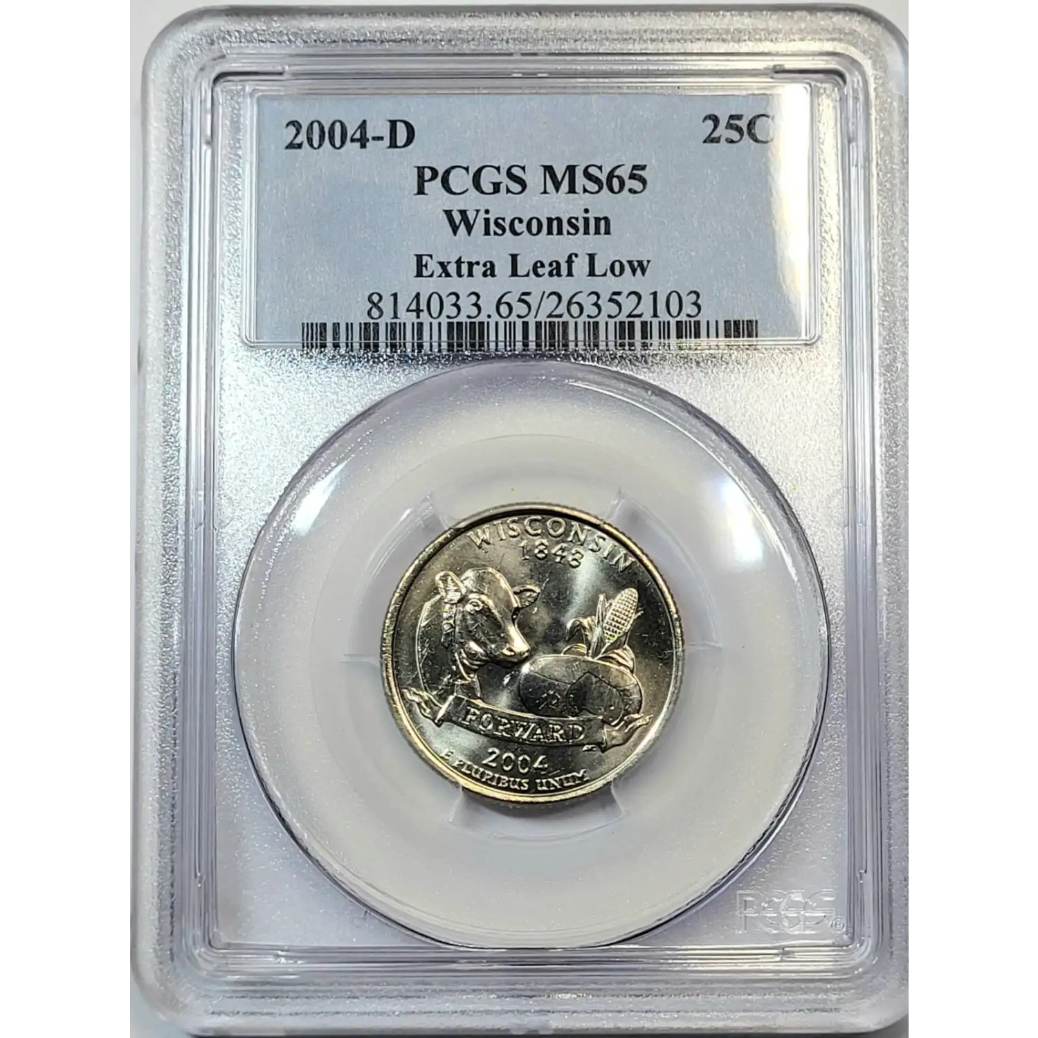 2004-D State Quarter PCGS MS-65 Wisconsin - Extra Leaf Low