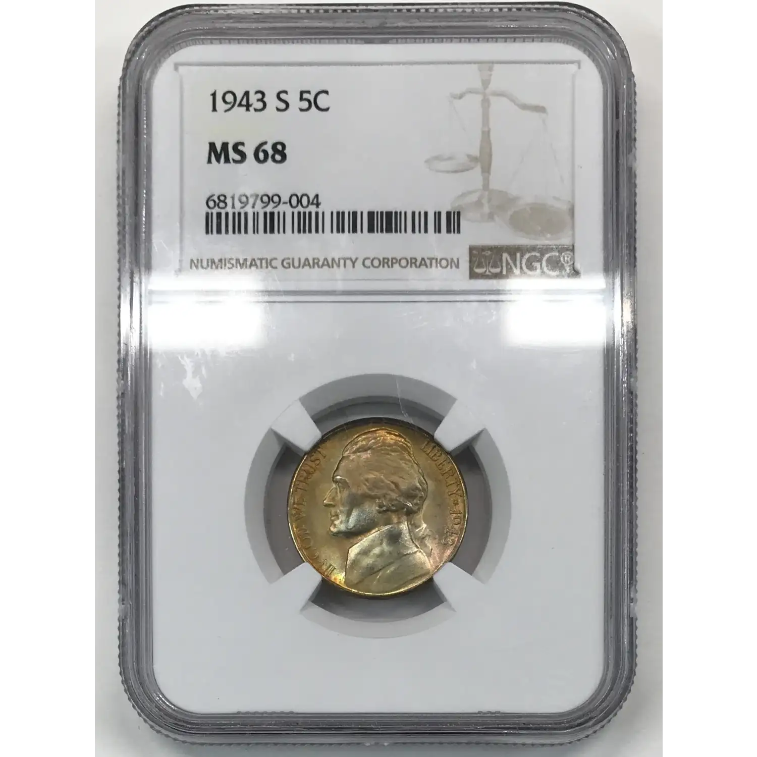 1943-S Silver Jefferson War Nickel NGC MS-68 *Rainbow Toning*