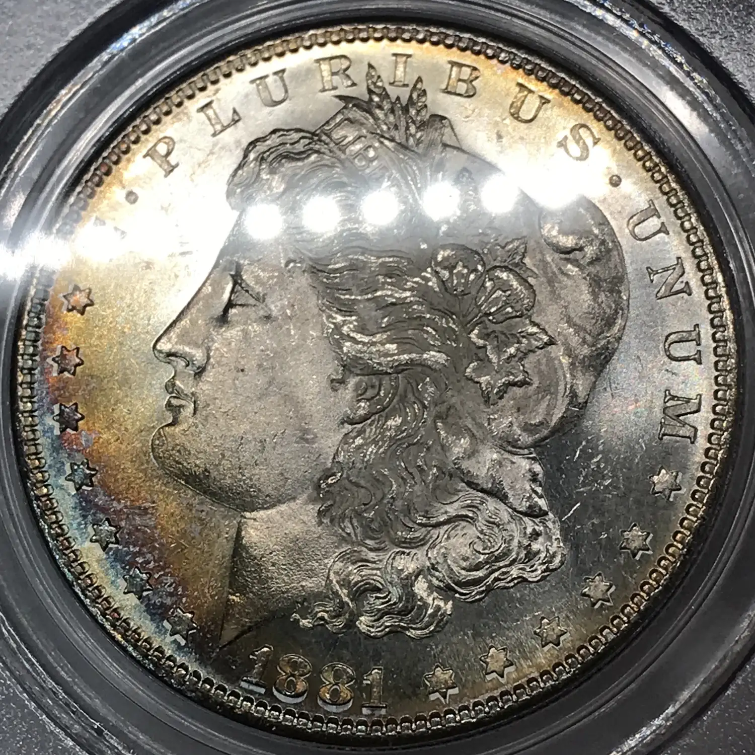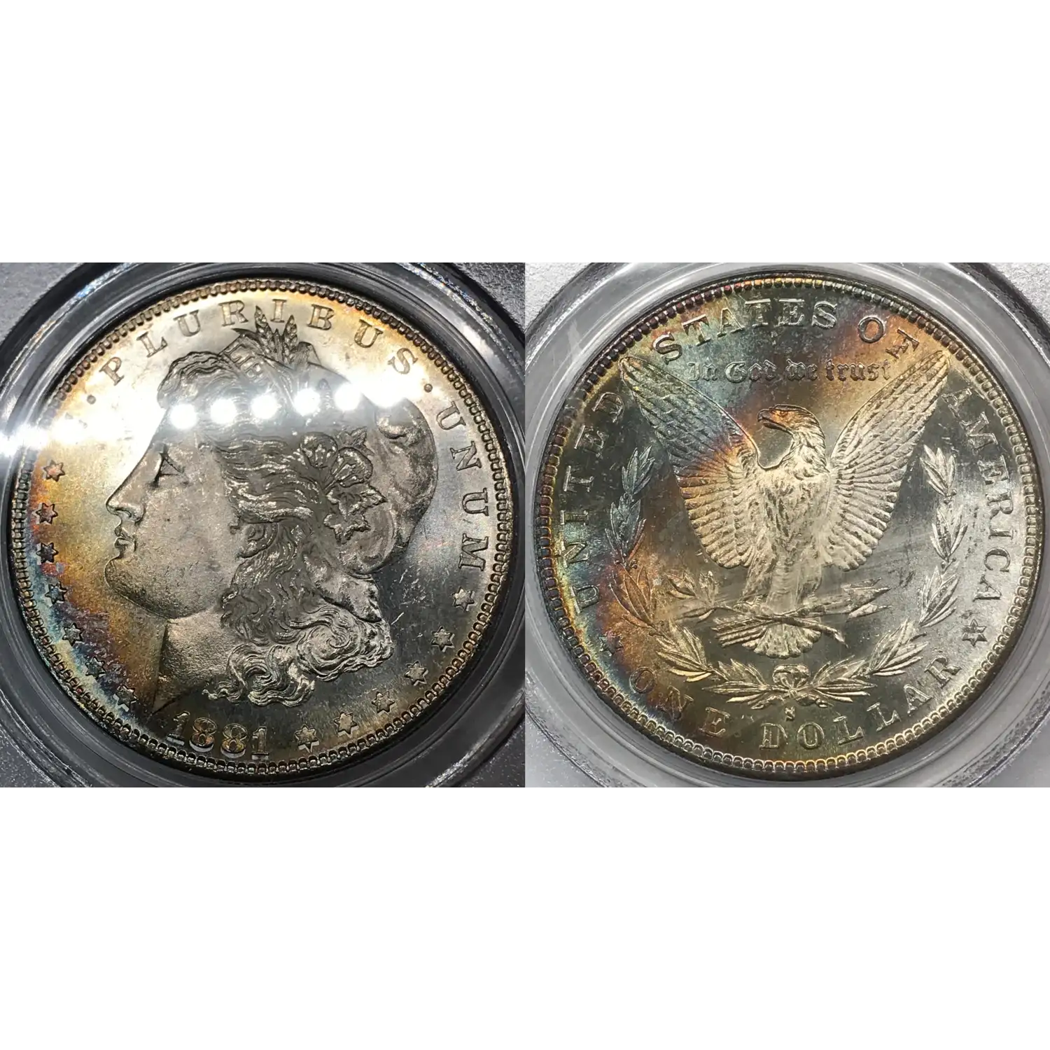 1881-S Morgan Silver Dollar PCGS MS-64 *Rainbow Toning*, esp. reverse