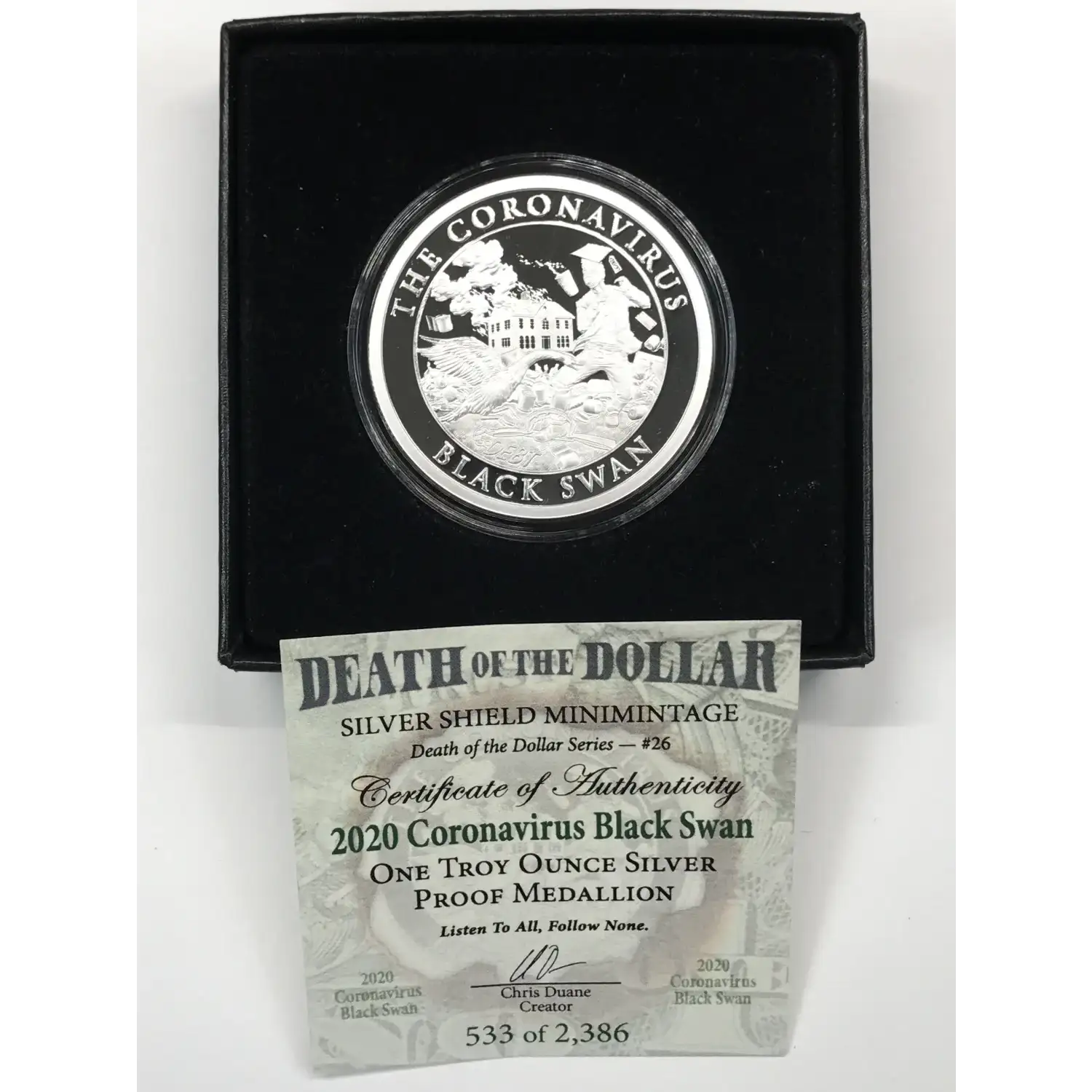 2020 "Coronavirus Black Swan" 1 oz Proof Silver Round/Medallion