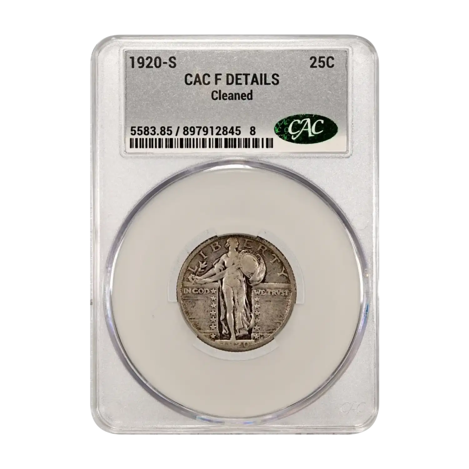 1920-S Standing Liberty Quarter CAC Grading (CACG) F/Fine Details (cleaned)