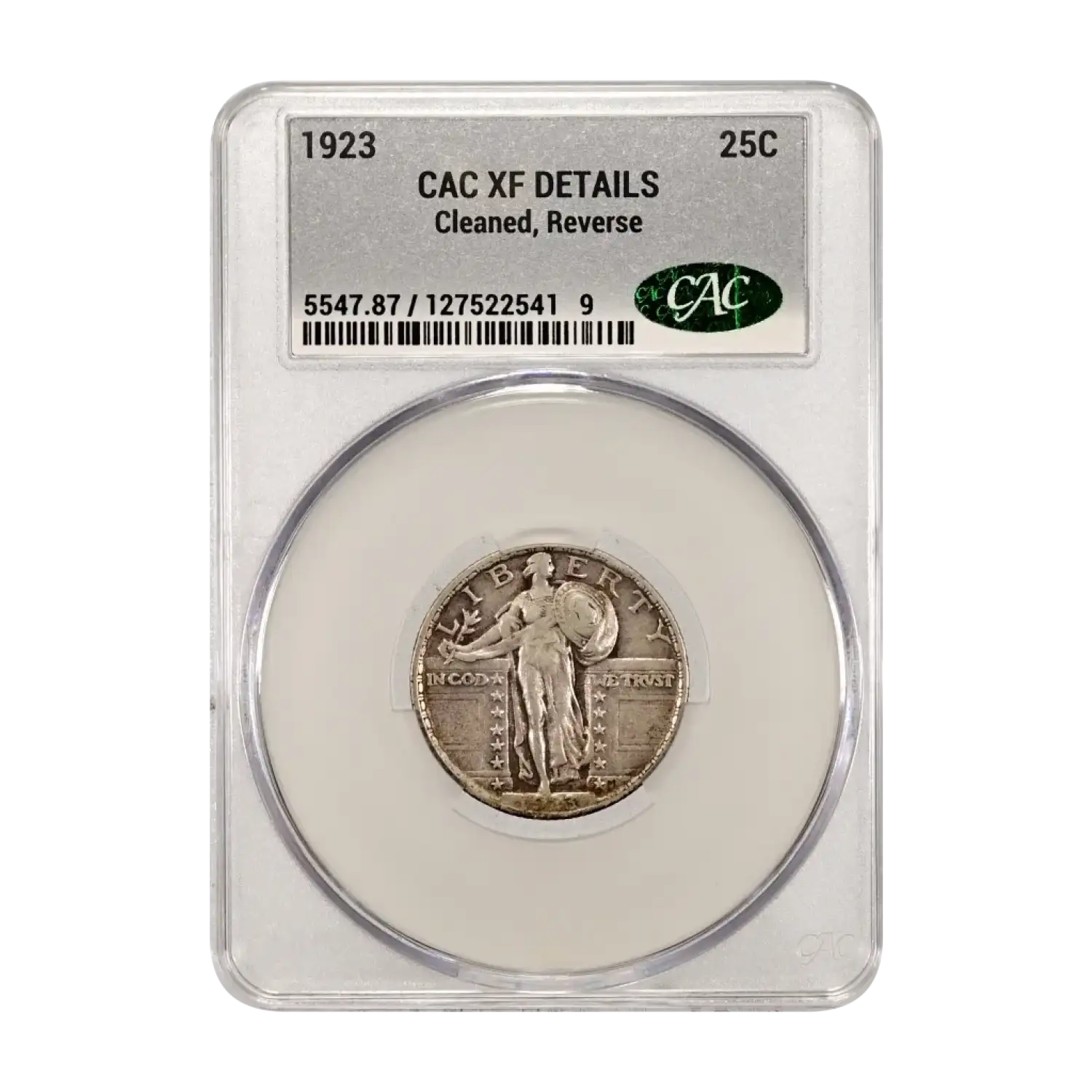 1923-P Standing Liberty Quarter CAC Grading (CACG) XF Details (cleaned, reverse)