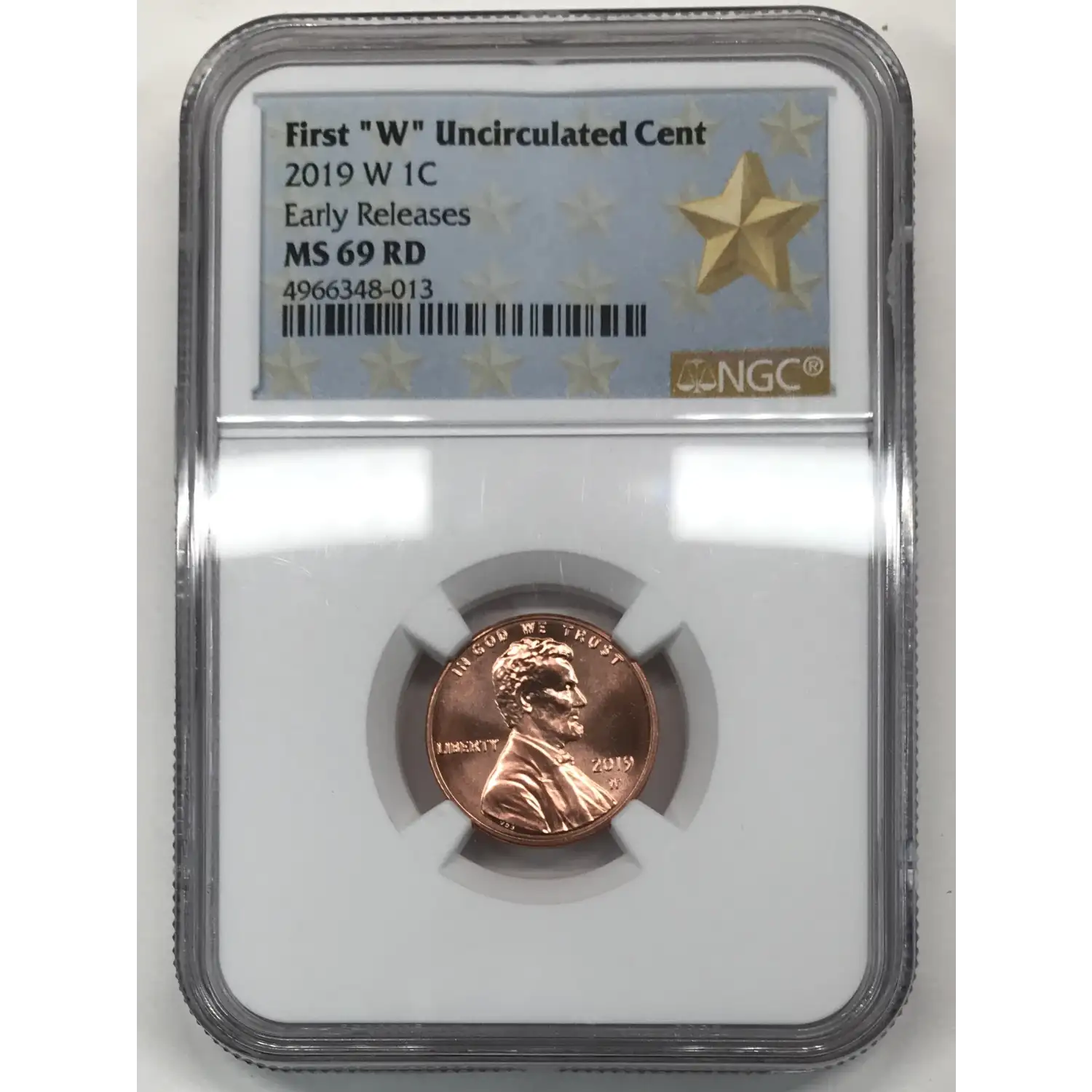 2019-W Lincoln Shield Cent NGC MS-69 RD First "W" Uncirculated Cent Early Releases
