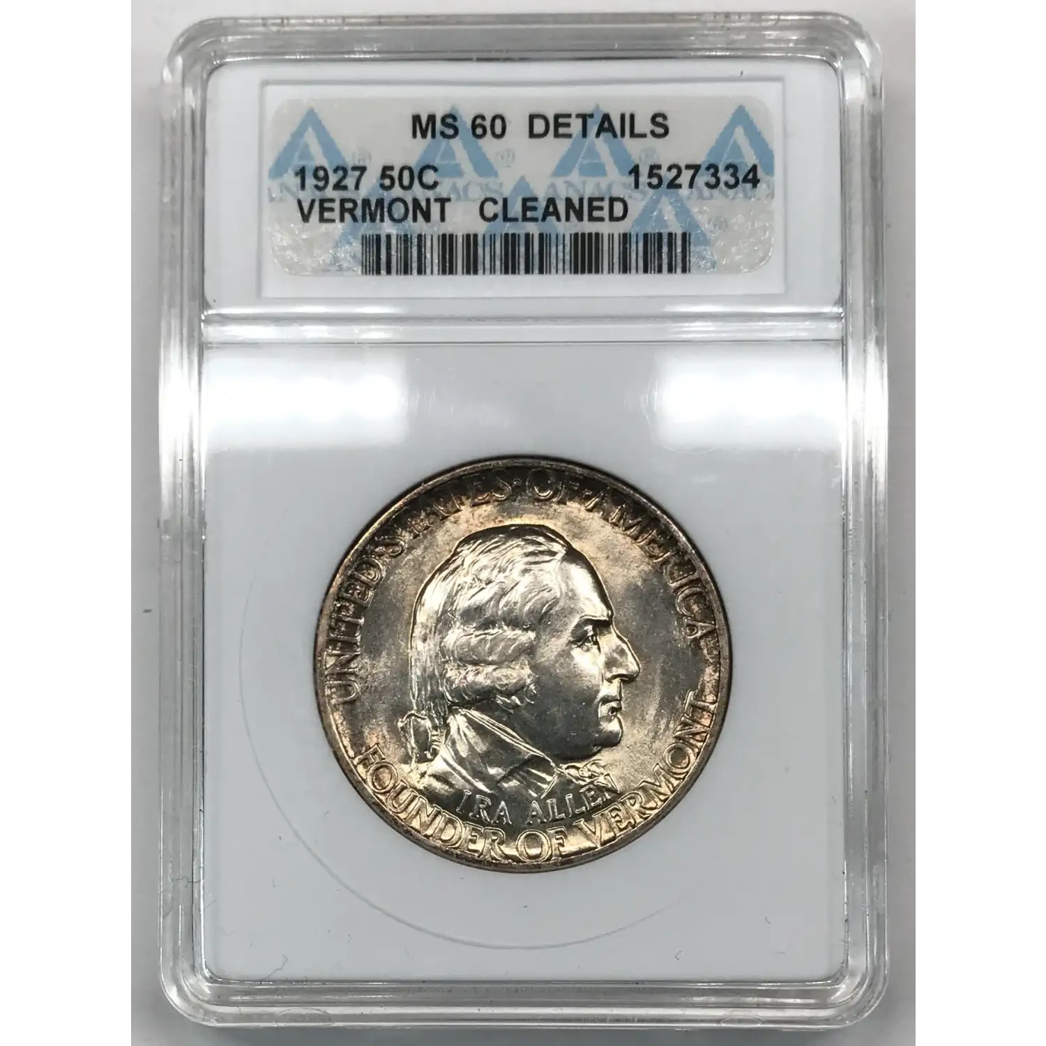 1927 P Vermont Sesquicentennial Commemorative Half Dollar ANACS MS-60 Details (cleaned) - old white soapbox holder