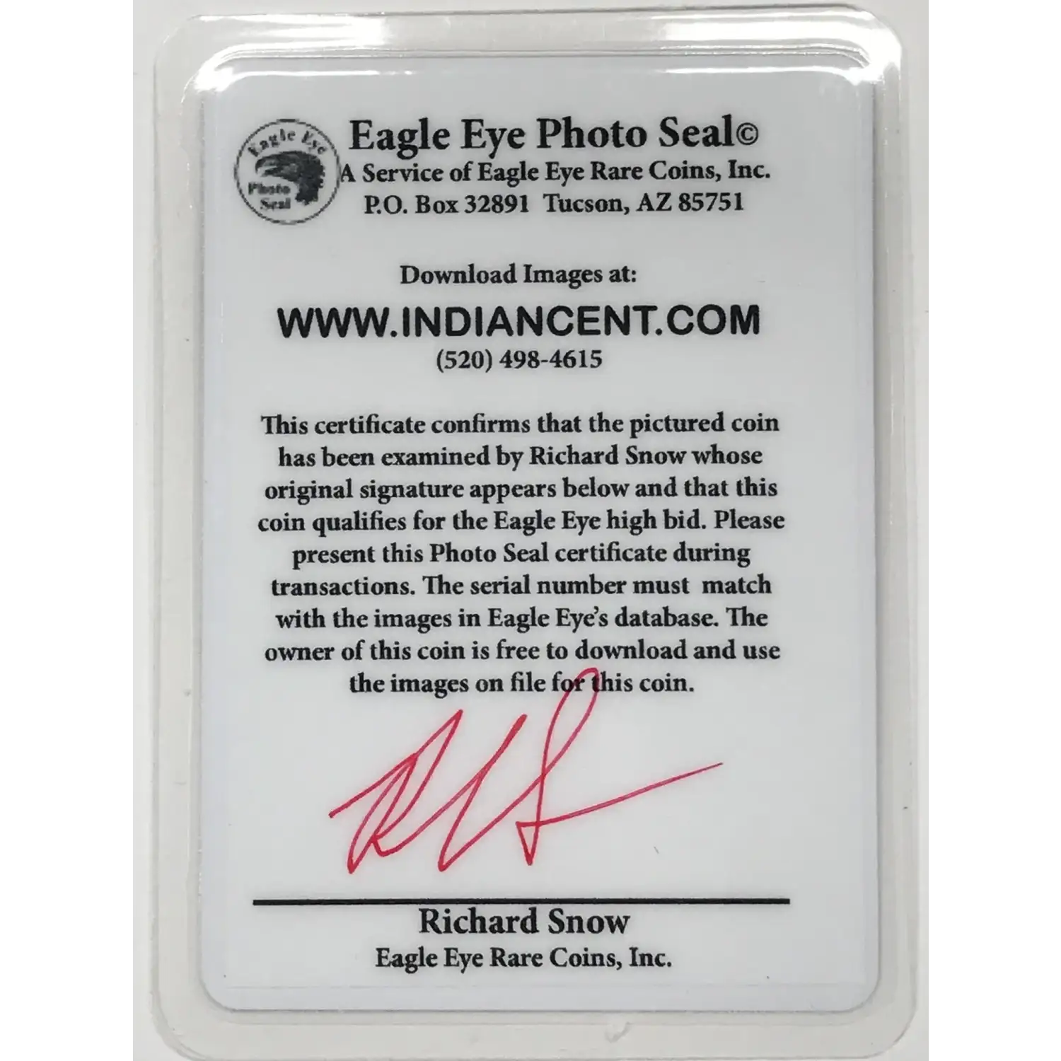 1893 P Indian Head Cent PCGS MS-64 RB - Eagle Eye Photo Seal w/ Card