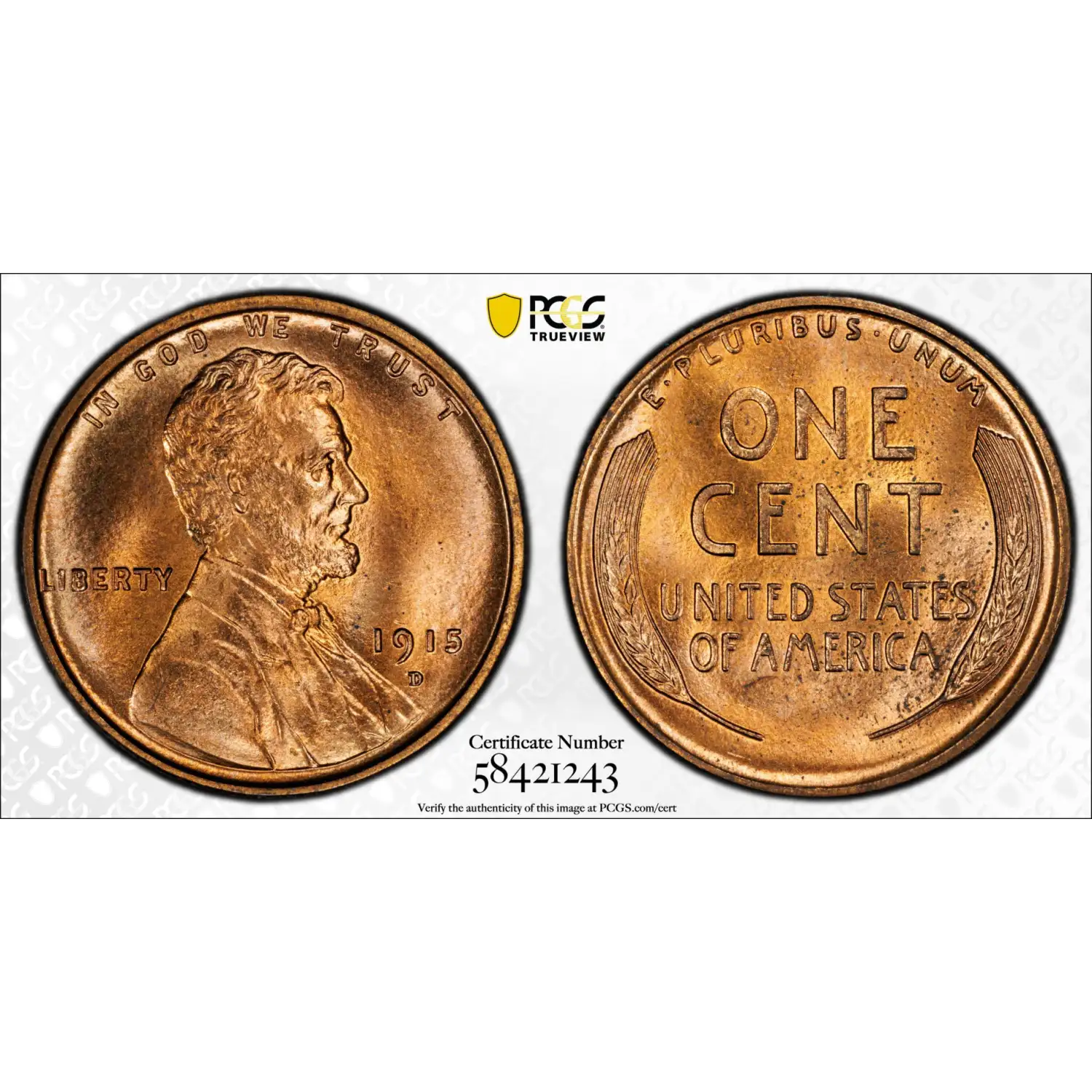 1915 D Lincoln Wheat Cent PCGS MS-65+ Plus RD - nice coin