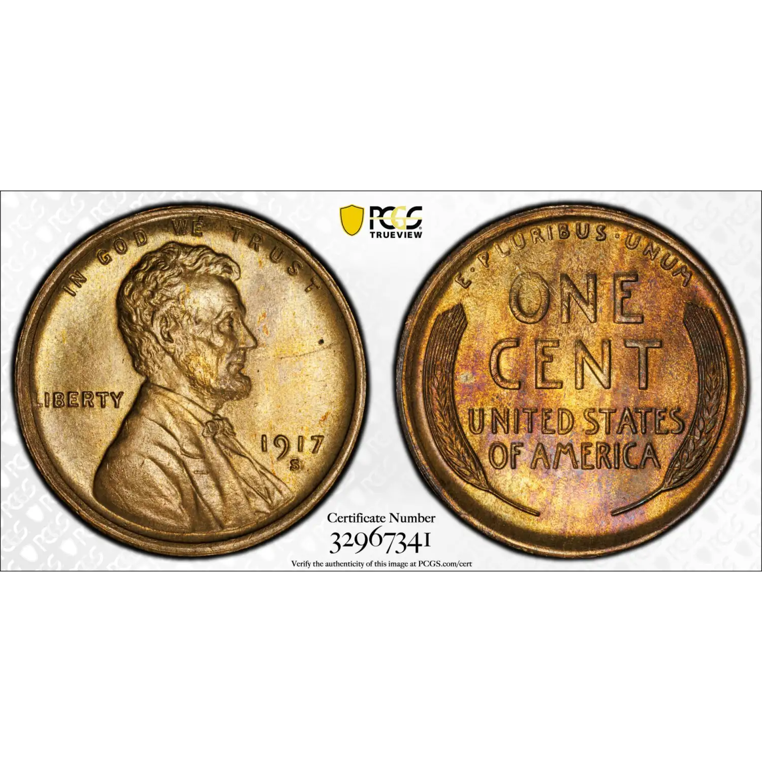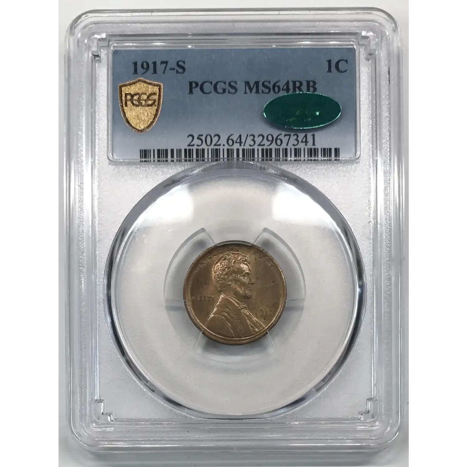 1917-S Lincoln Wheat Cent PCGS MS-64 RB CAC