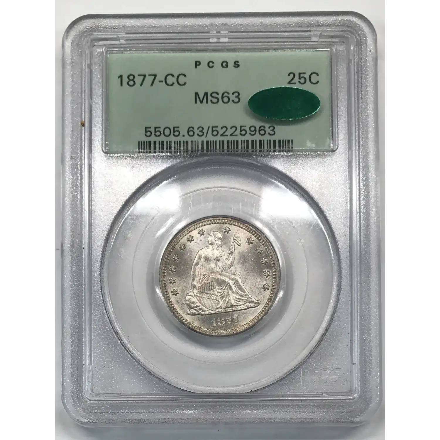 1877 CC Seated Liberty Quarter PCGS MS-63 CAC - Gen 3.1 Old Green Holder (OGH)