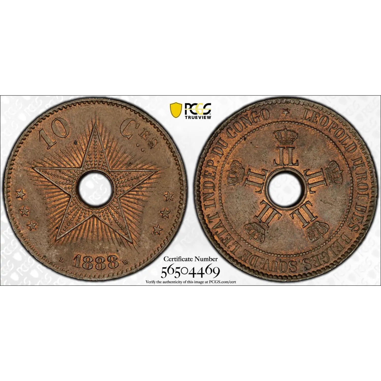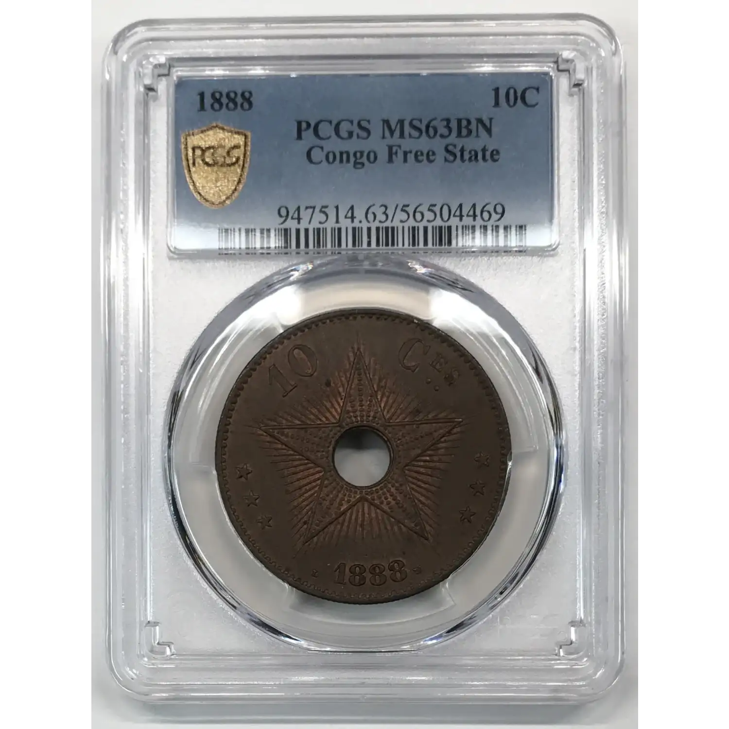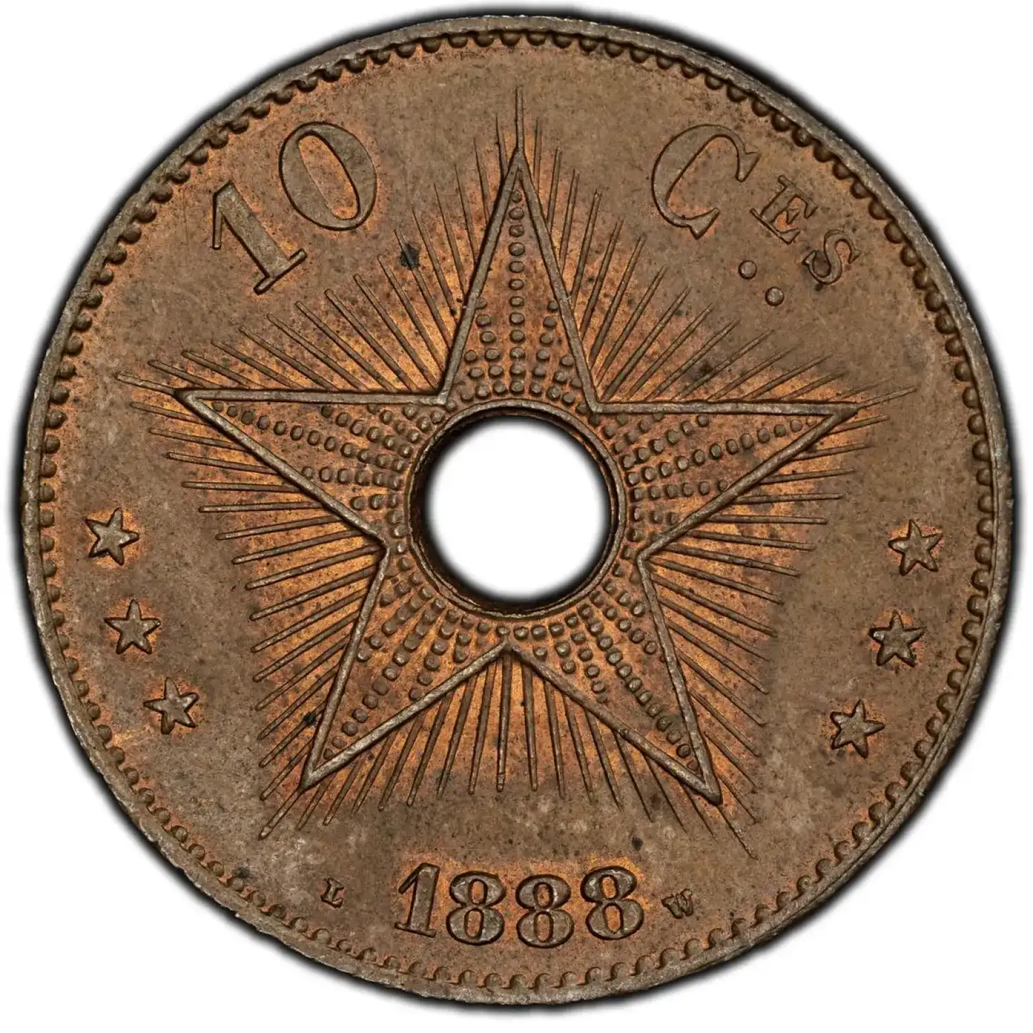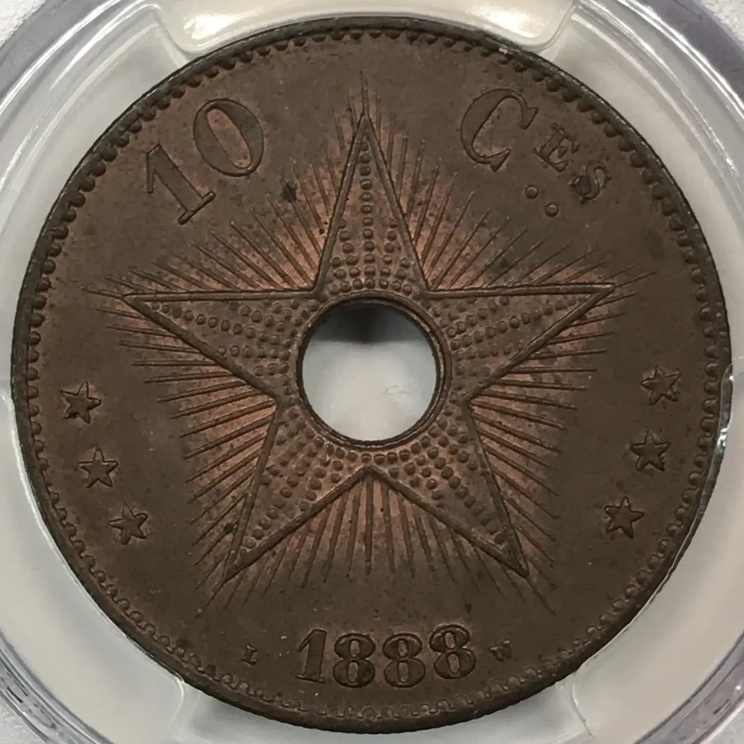 1888 CONGO FREE STATE Copper 10 CENTIMES PCGS MS-63 BN - KM-4