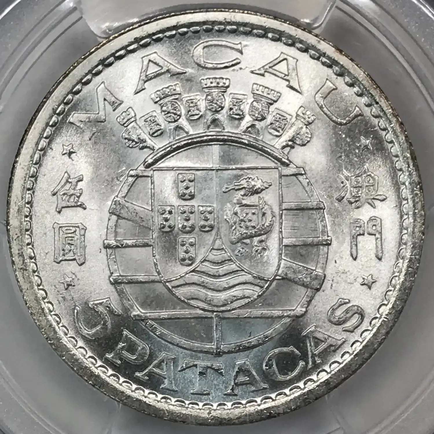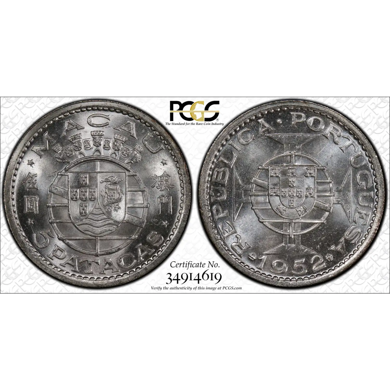 1952 MACAU/MACAO Silver 5 PATACAS PCGS MS-65 - KM-5