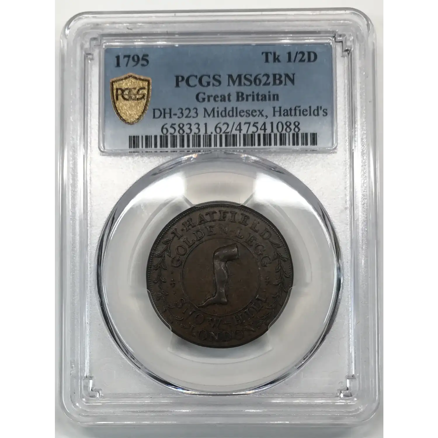 1795 Great Britain Copper Half Penny (1/2D) Conder Token PCGS MS-62 BN - DH-323 Middlesex, Hatfield's
