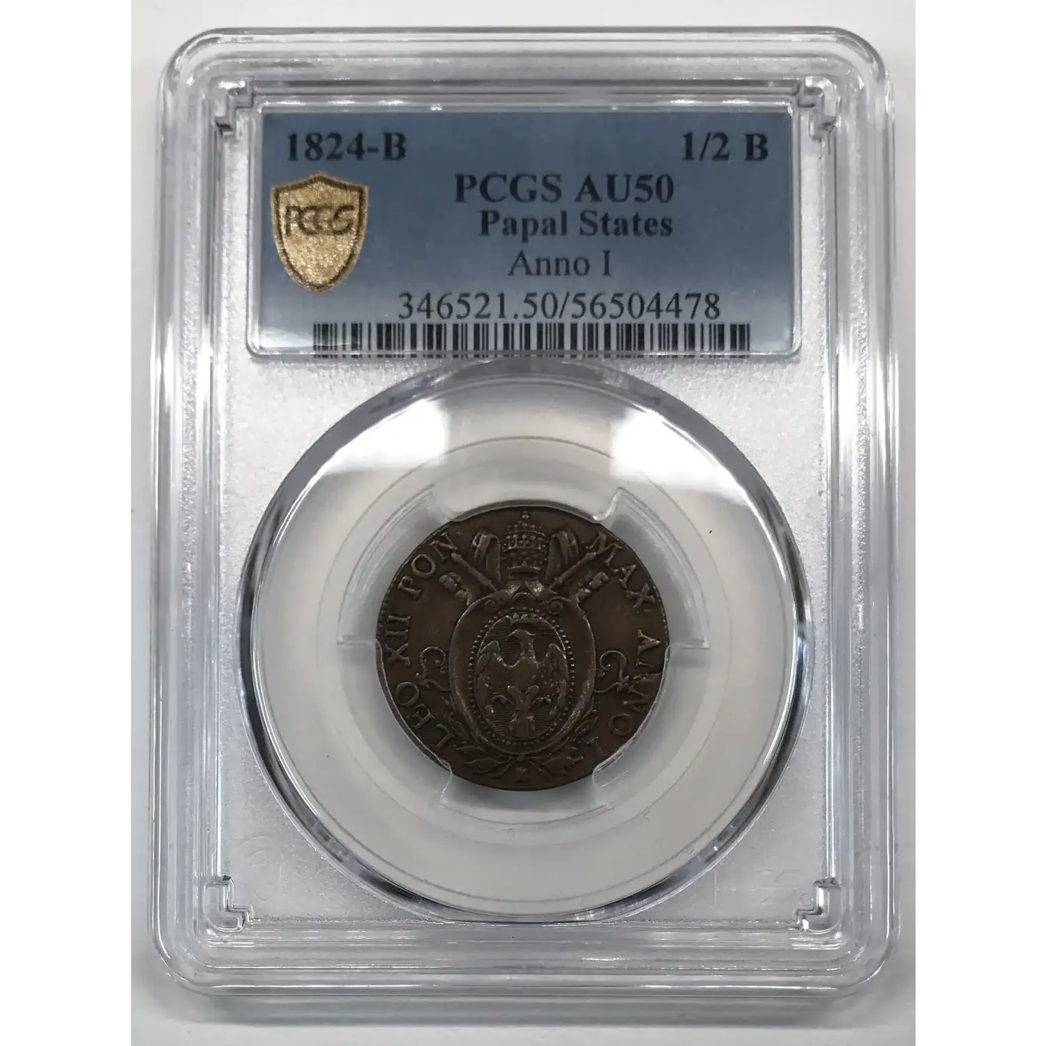 1824-B ITALIAN STATES Copper MEZZO (1/2) BAIOCCO PCGS AU-50 BN Anno I