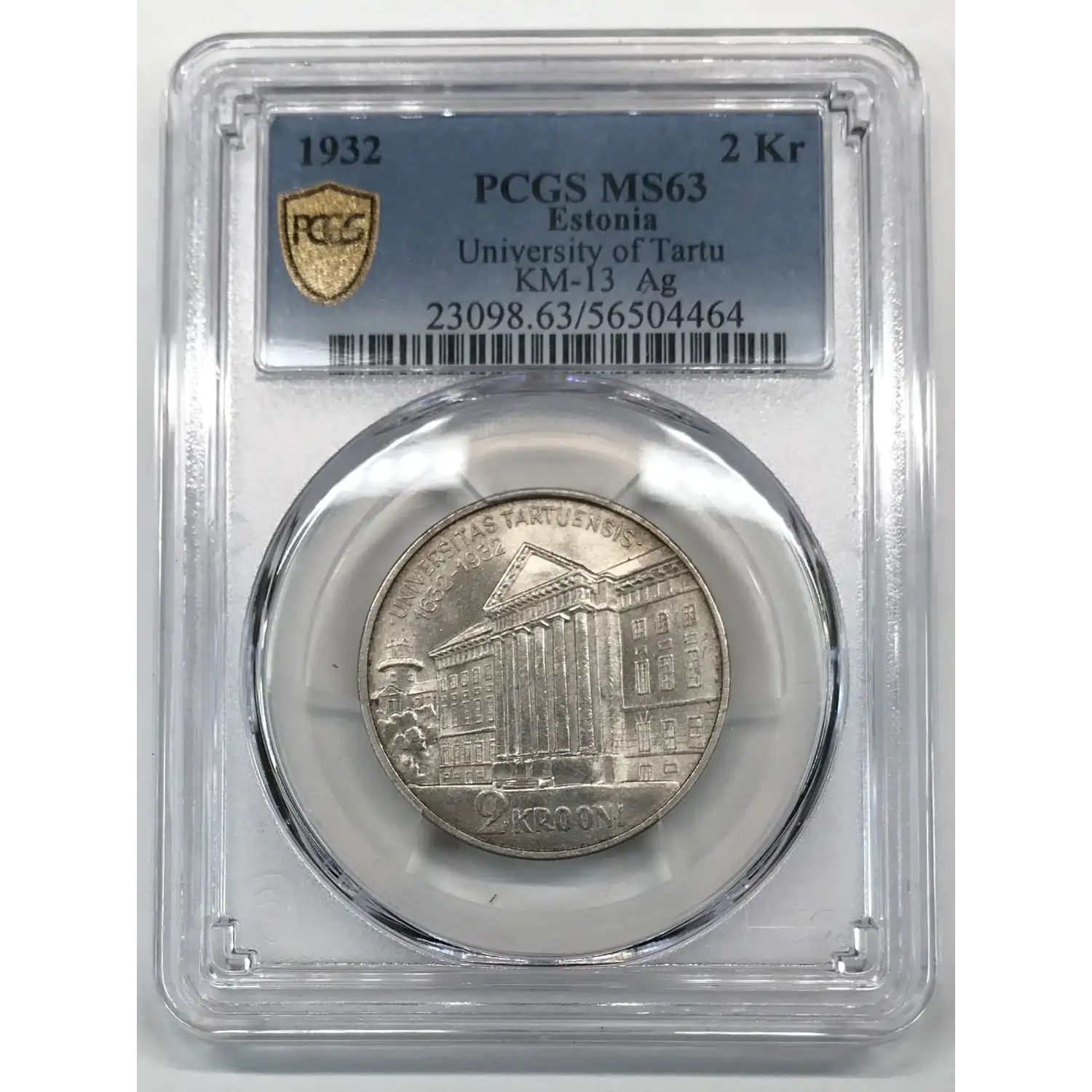 1932 ESTONIA Silver 2 KROONI PCGS MS-63 - University of Tartu - KM-13