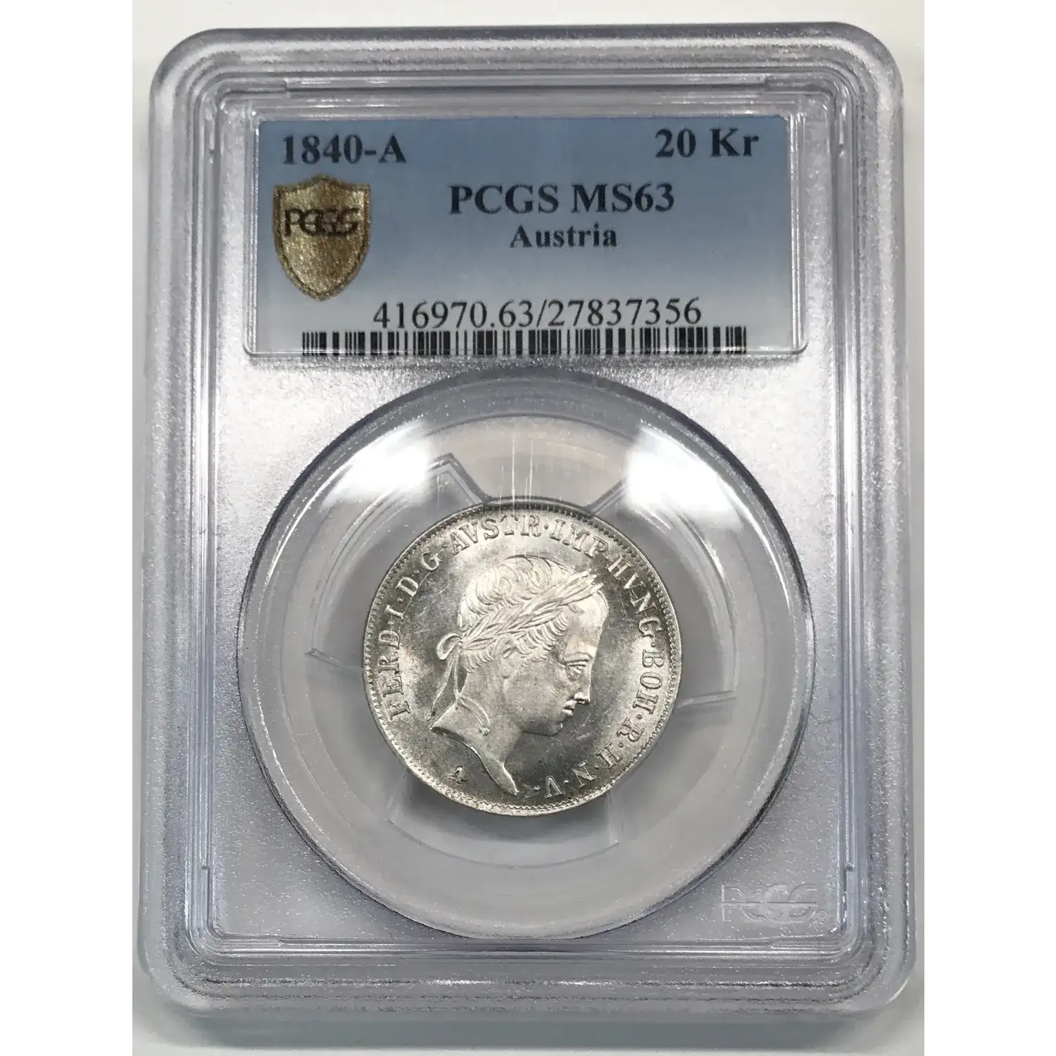 1840-A Austria Silver 20 KREUZER PCGS MS-63
