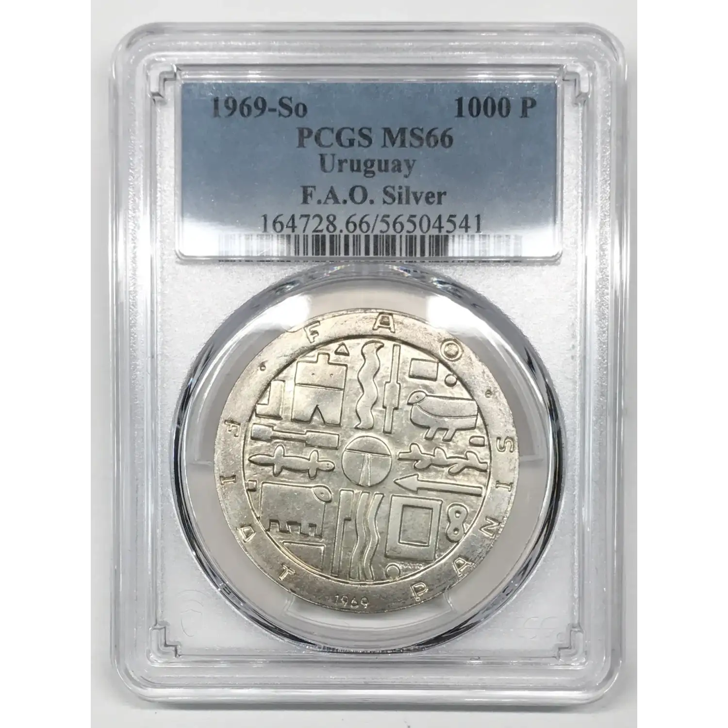 1969-So URUGUAY Silver 1000 PESOS PCGS MS-66 - F.A.O. / FAO - KM#55