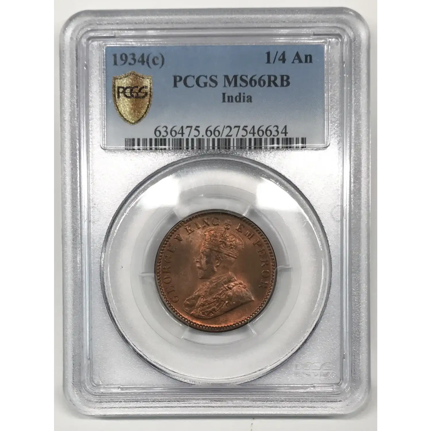 1934 (c) INDIA-BRITISH Bronze 1/4 ANNA PCGS MS-66 RB - SW-8.382, KM-512