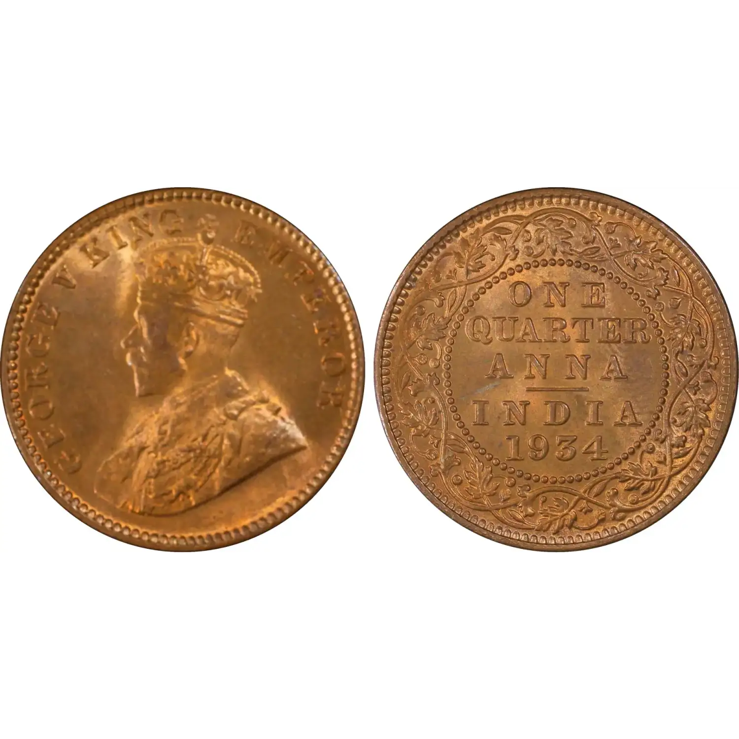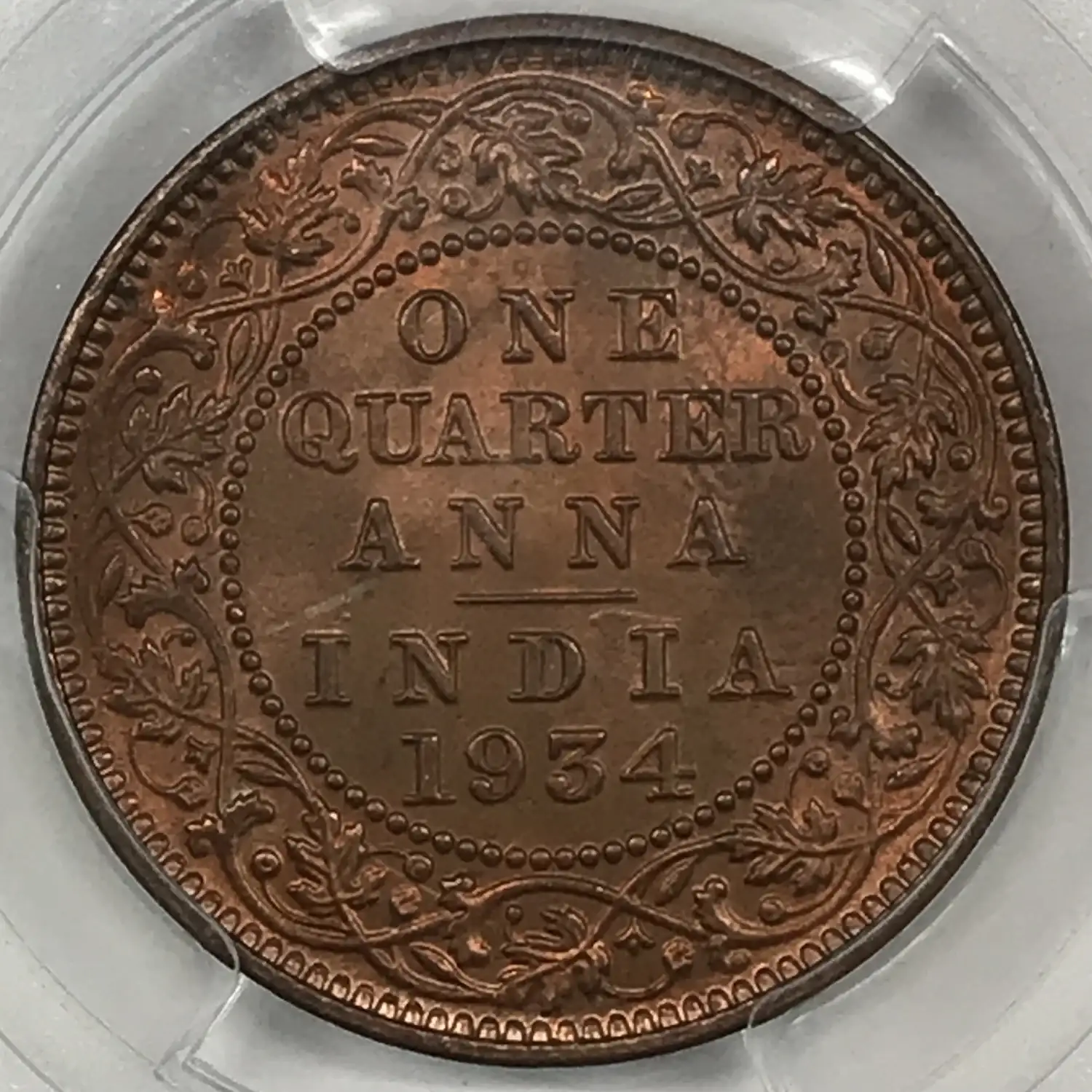 1934-(c) INDIA-BRITISH Bronze 1/4 ANNA PCGS MS-66 RB SW-8.382