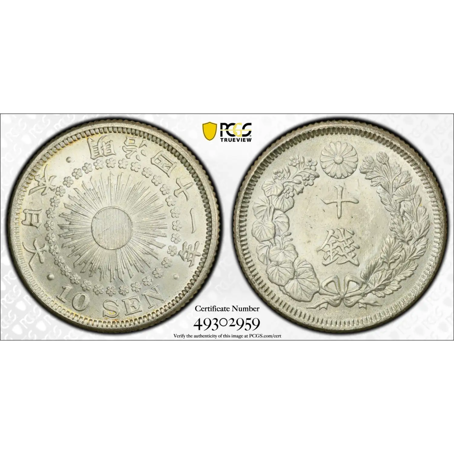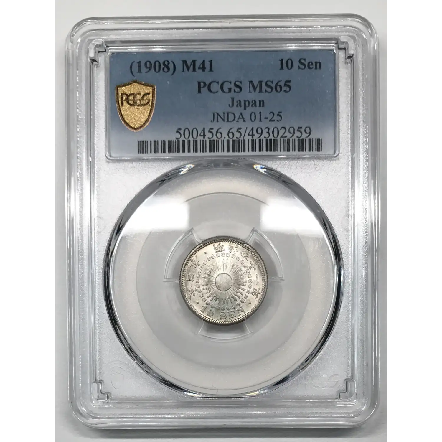 1908 (Meiji M41) JAPAN Silver 10 SEN PCGS MS-65 - JNDA 01-25, Y-29