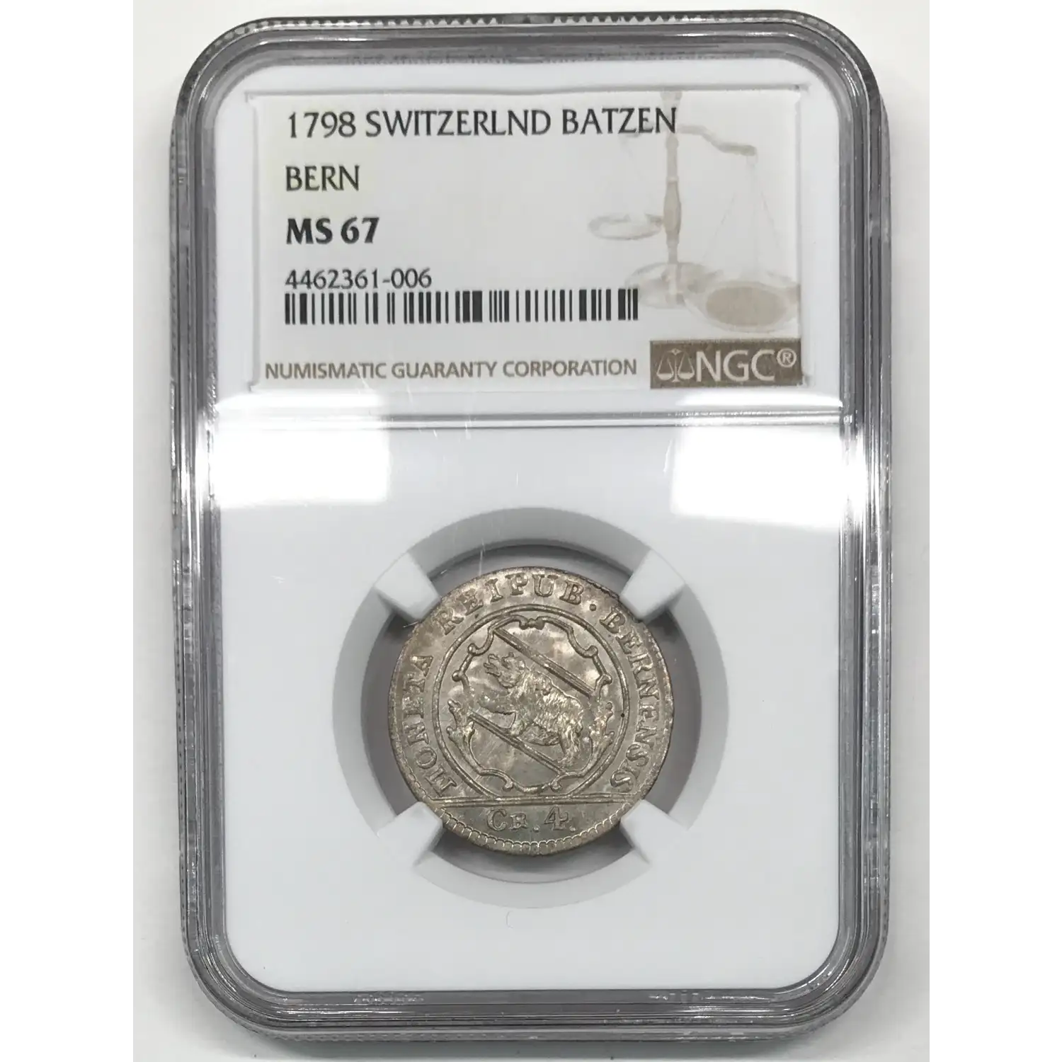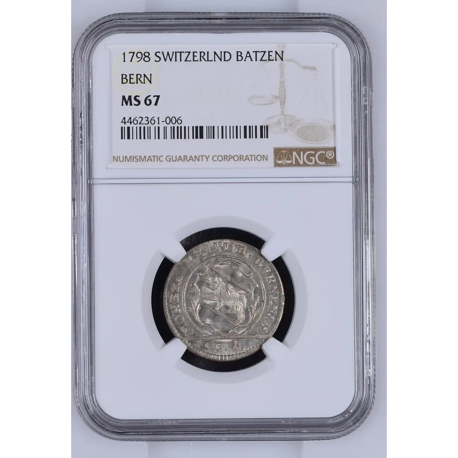 1798 City of Bern Switzerland (SWISS CANTONS) Billon 4 KREUZER (1 Batzen) NGC MS-67 - KM-87