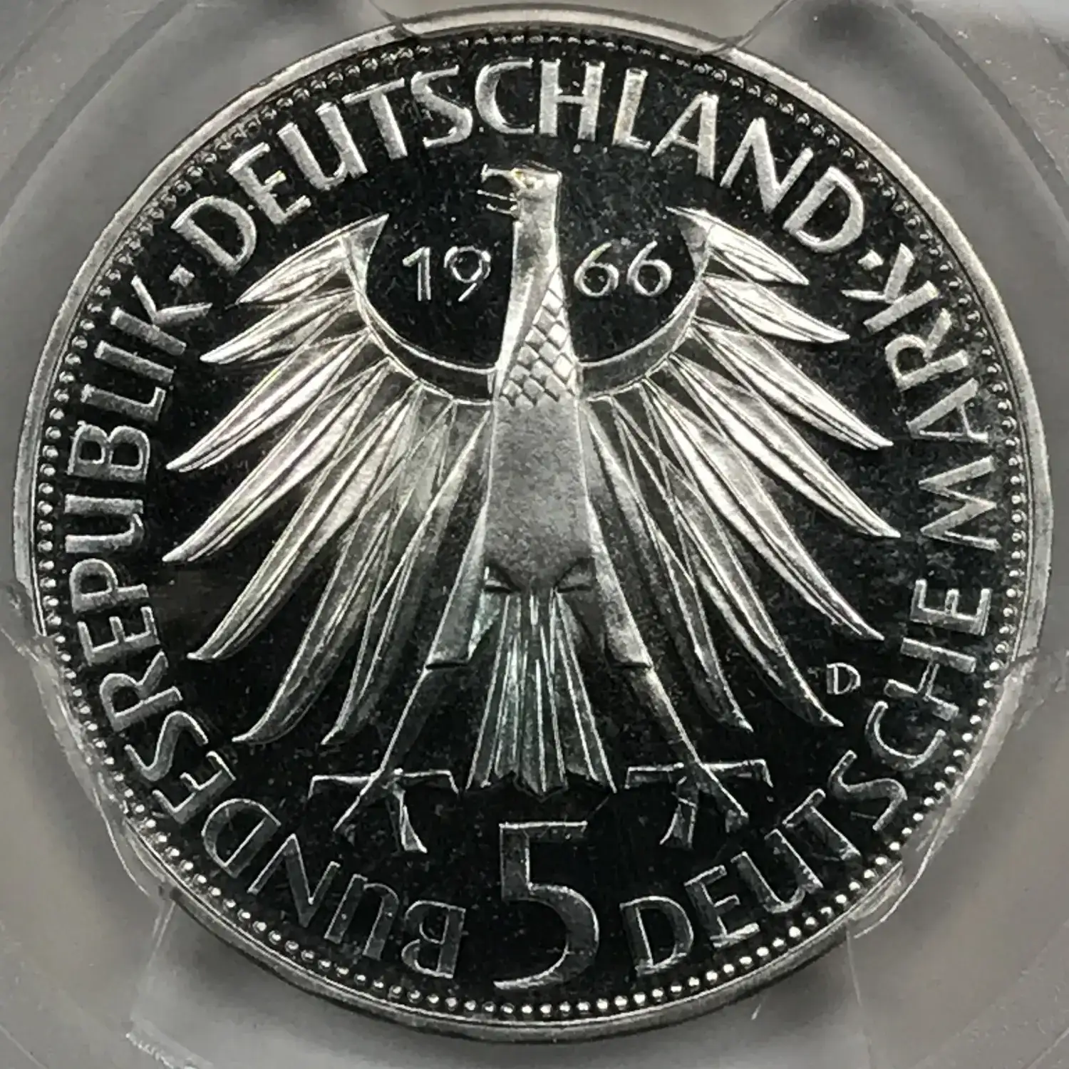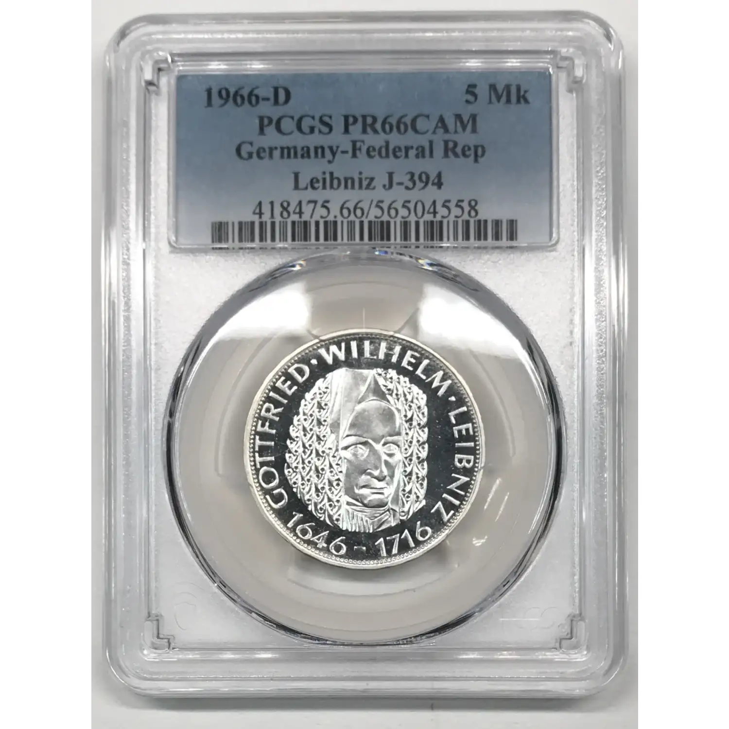 1966-D GERMANY-FEDERAL REPUBLIC Silver 5 MARK PCGS PR-66 CAM Wilhelm Leibniz J-394 KM-119