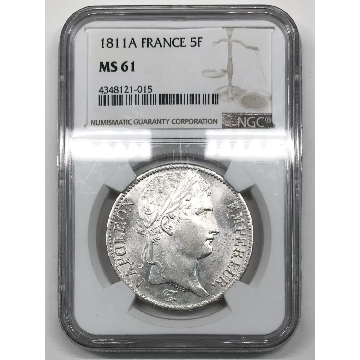 1811-A FRANCE Silver 5 FRANCS NGC MS-61