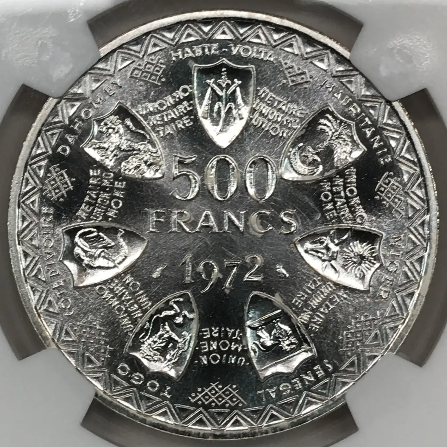 1972 West African States Silver 500 Francs NGC MS-63 MONETARY UNION 10TH ANNIVERSARY