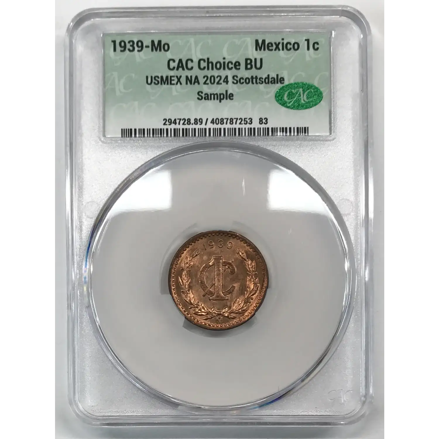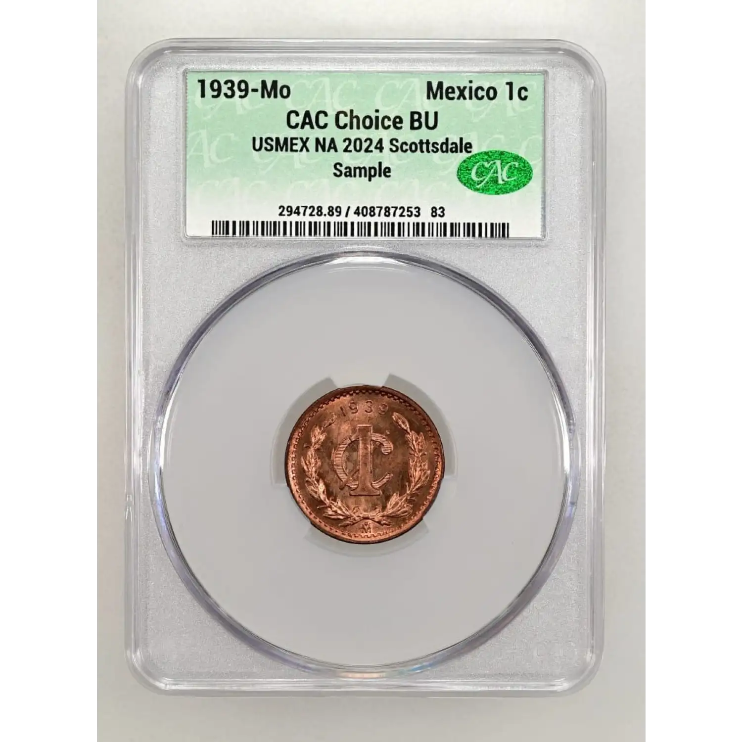 1939-Mo MEXICO Bronze CENTAVO CACG Choice BU BN 2024 12th Annual USMEX Coin Show CAC Sample Slab CAC