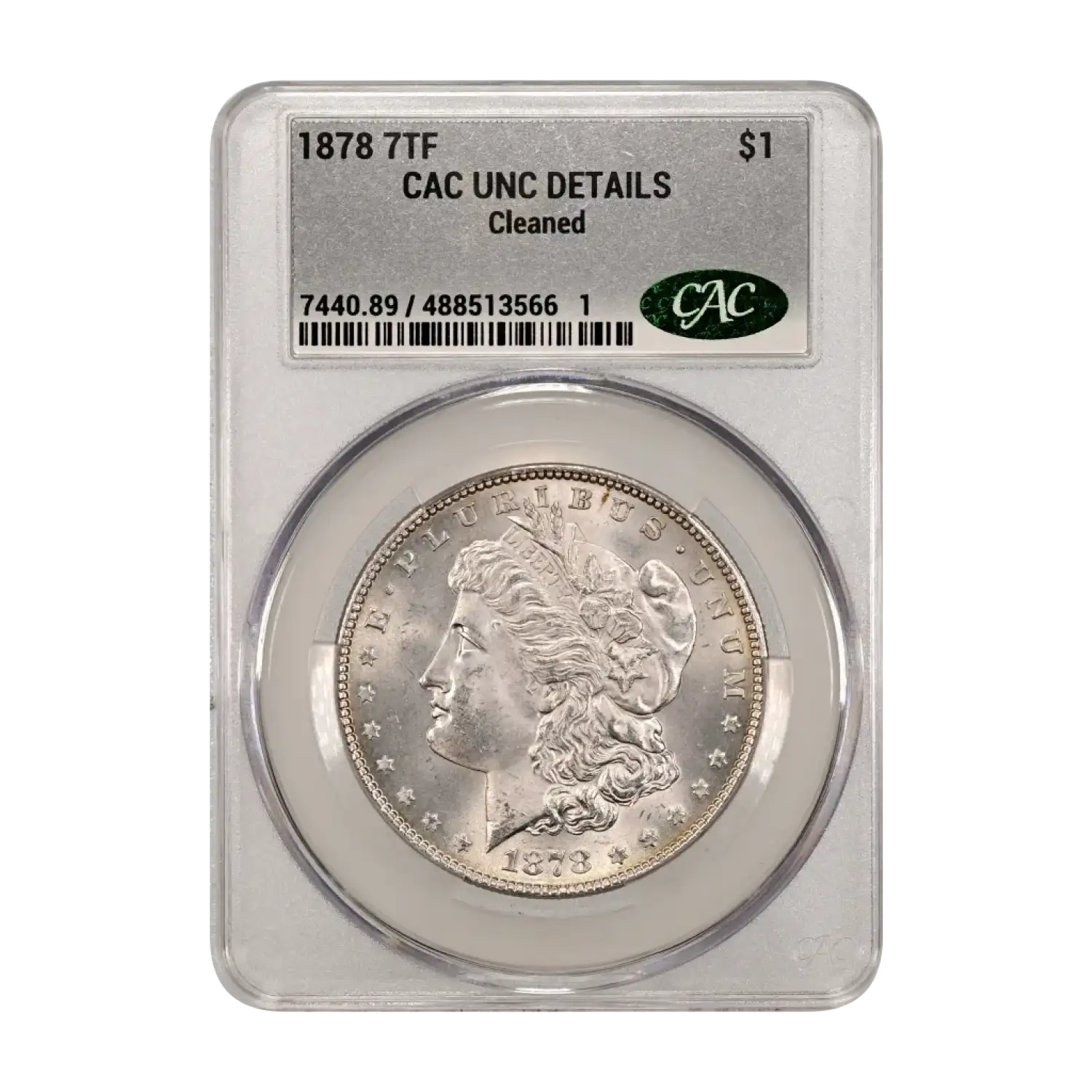 1878 P 7TF Morgan Silver Dollar CAC Grading (CACG) UNC Details (cleaned)