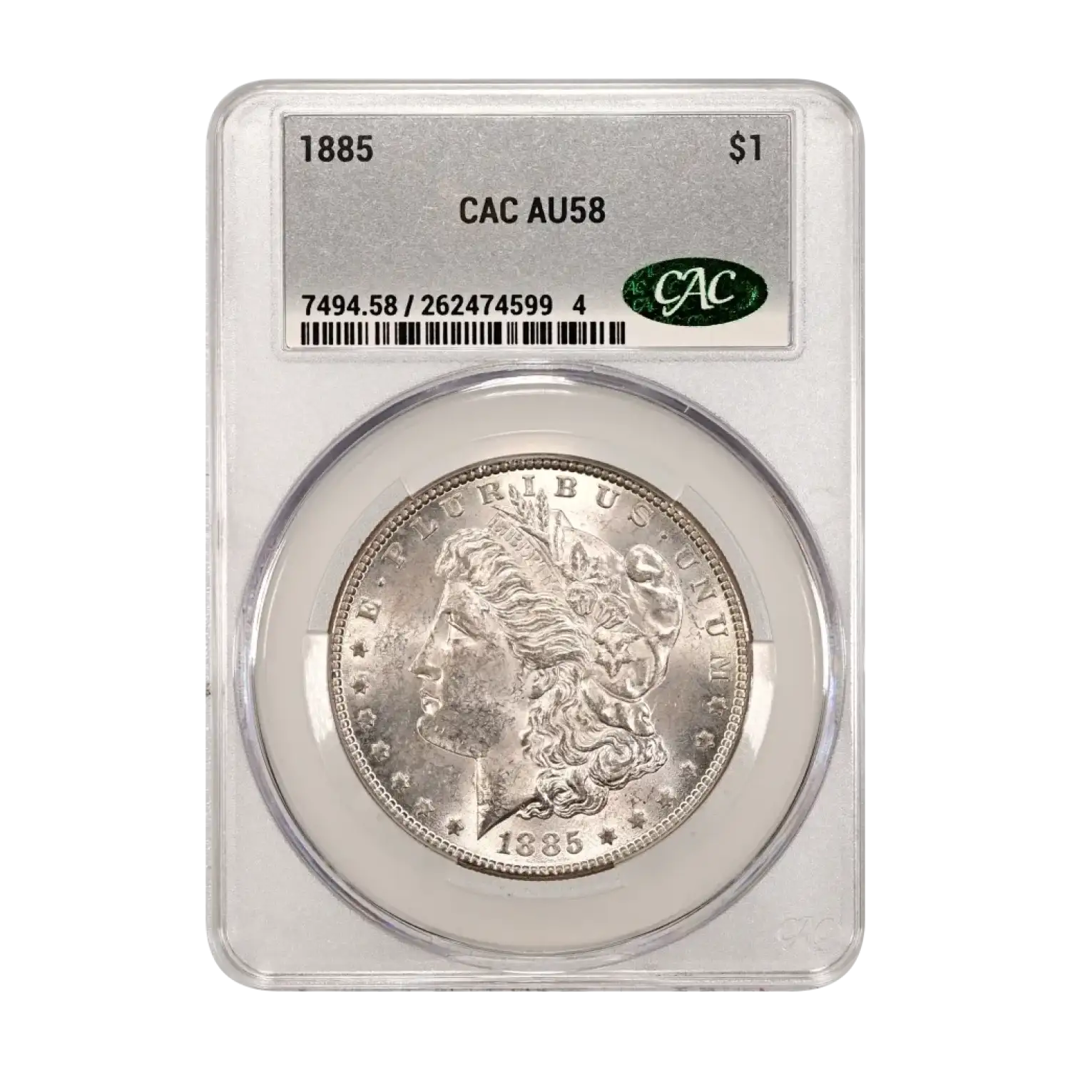 1885 P Morgan Silver Dollar CAC Grading (CACG) AU 58