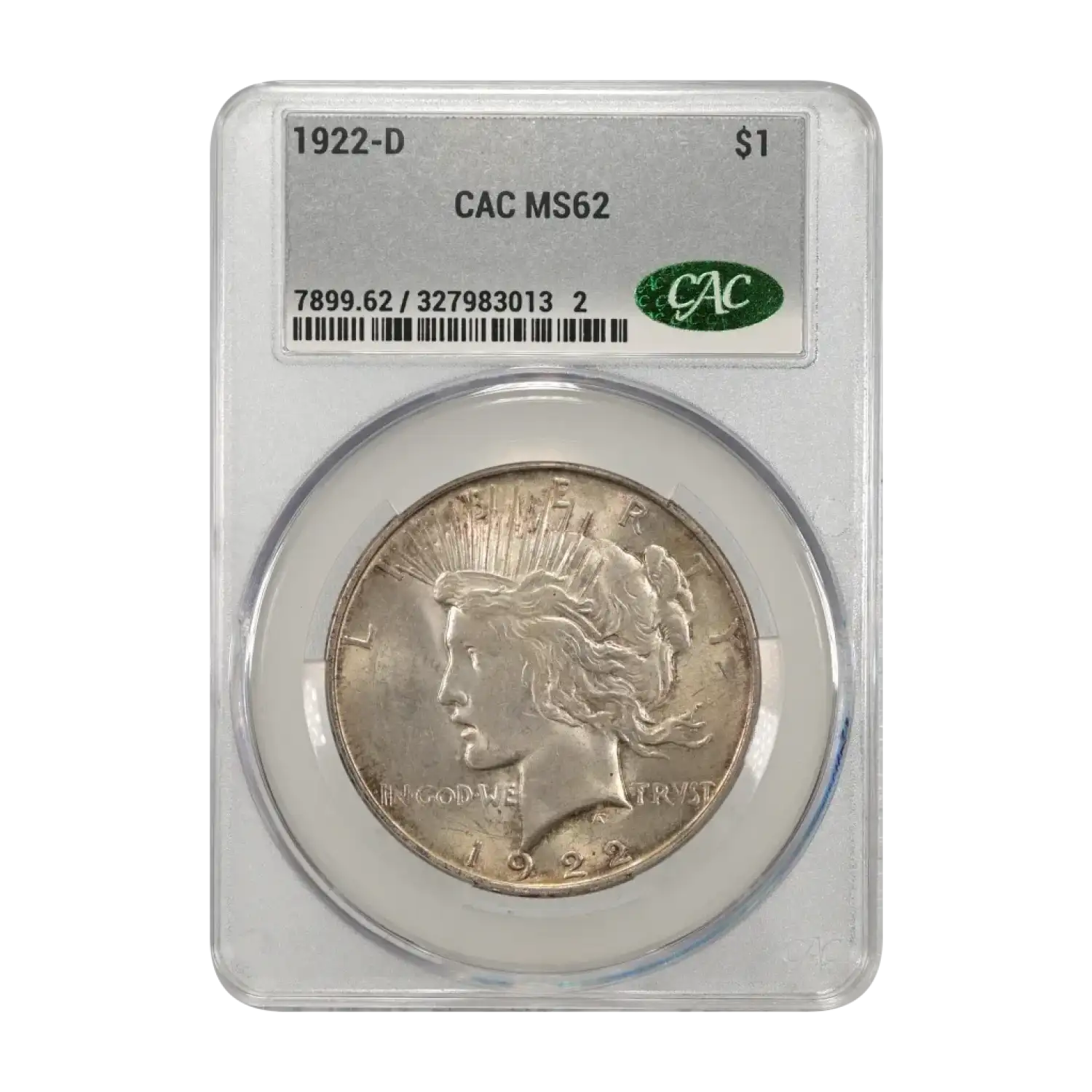 1922 D Peace Silver Dollar CAC Grading (CACG) MS 62