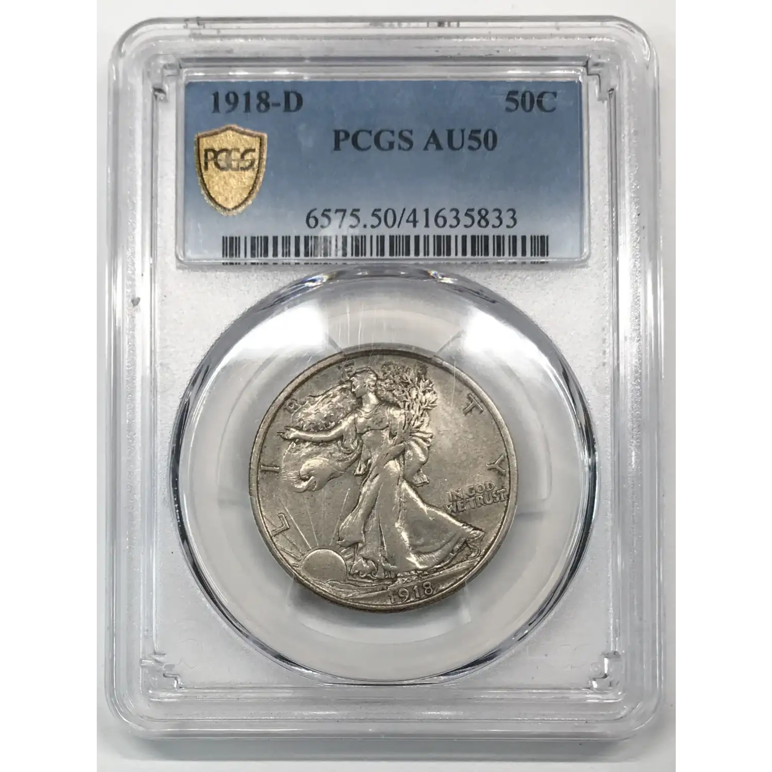 1918 D Walking Liberty Half Dollar PCGS AU-50