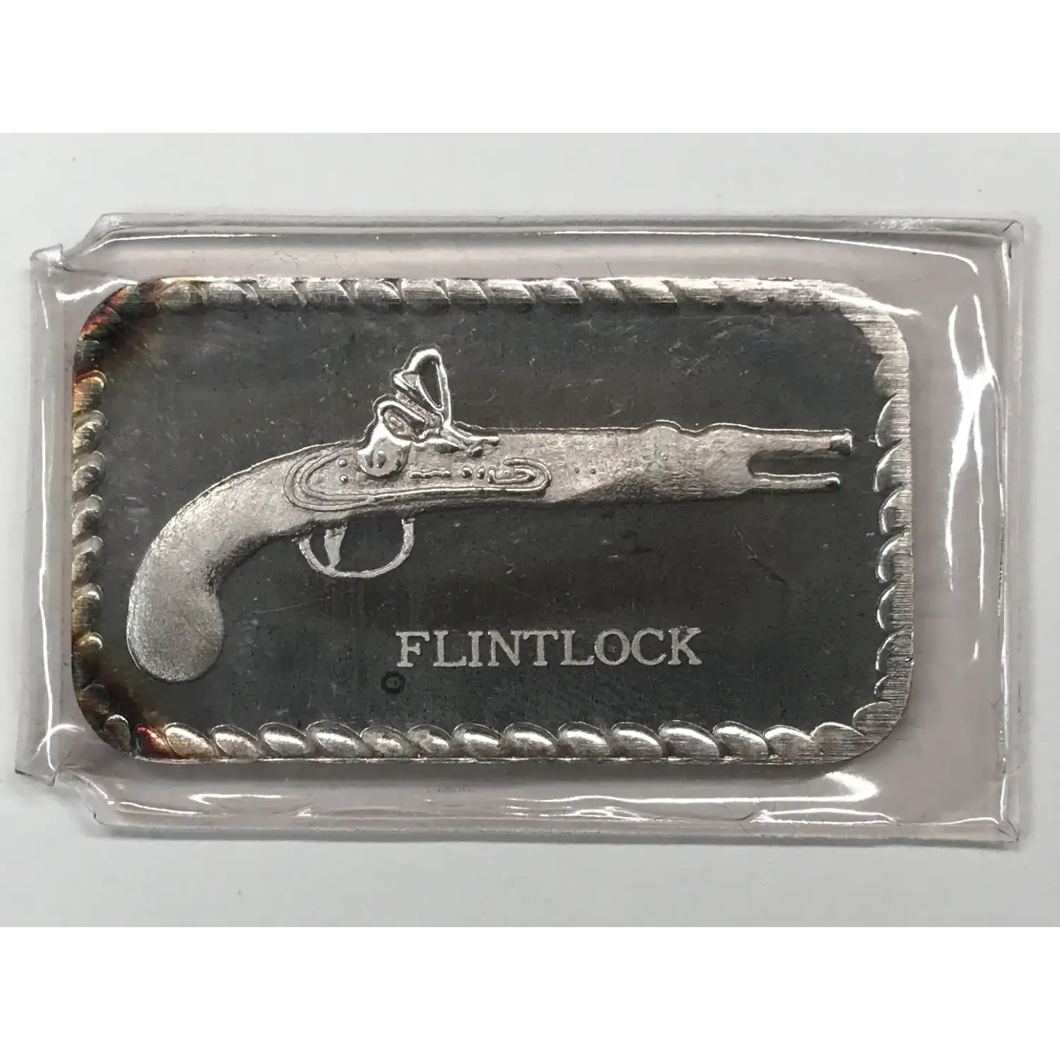 - 1 oz Silver Bar Flintlock Firearm Gun D.C.P.