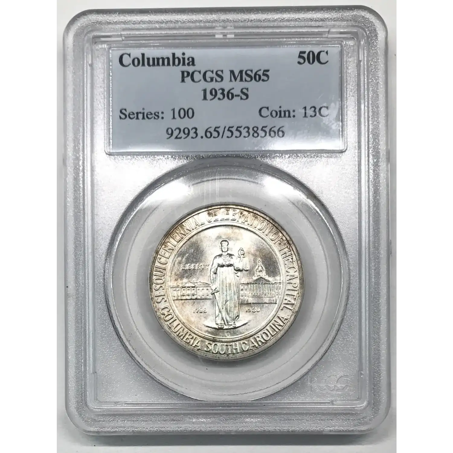 1936 S Columbia South Carolina Sesquicentennial Commemorative Half Dollar PCGS MS-65