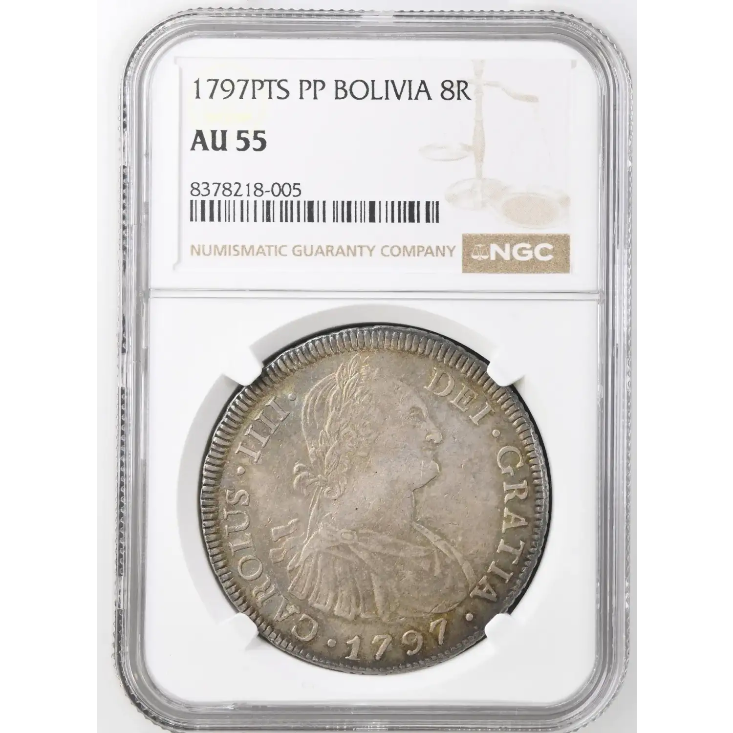 1797 PTS PP BOLIVIA Silver 8 REALES NGC AU-55 PTS PP KM#73