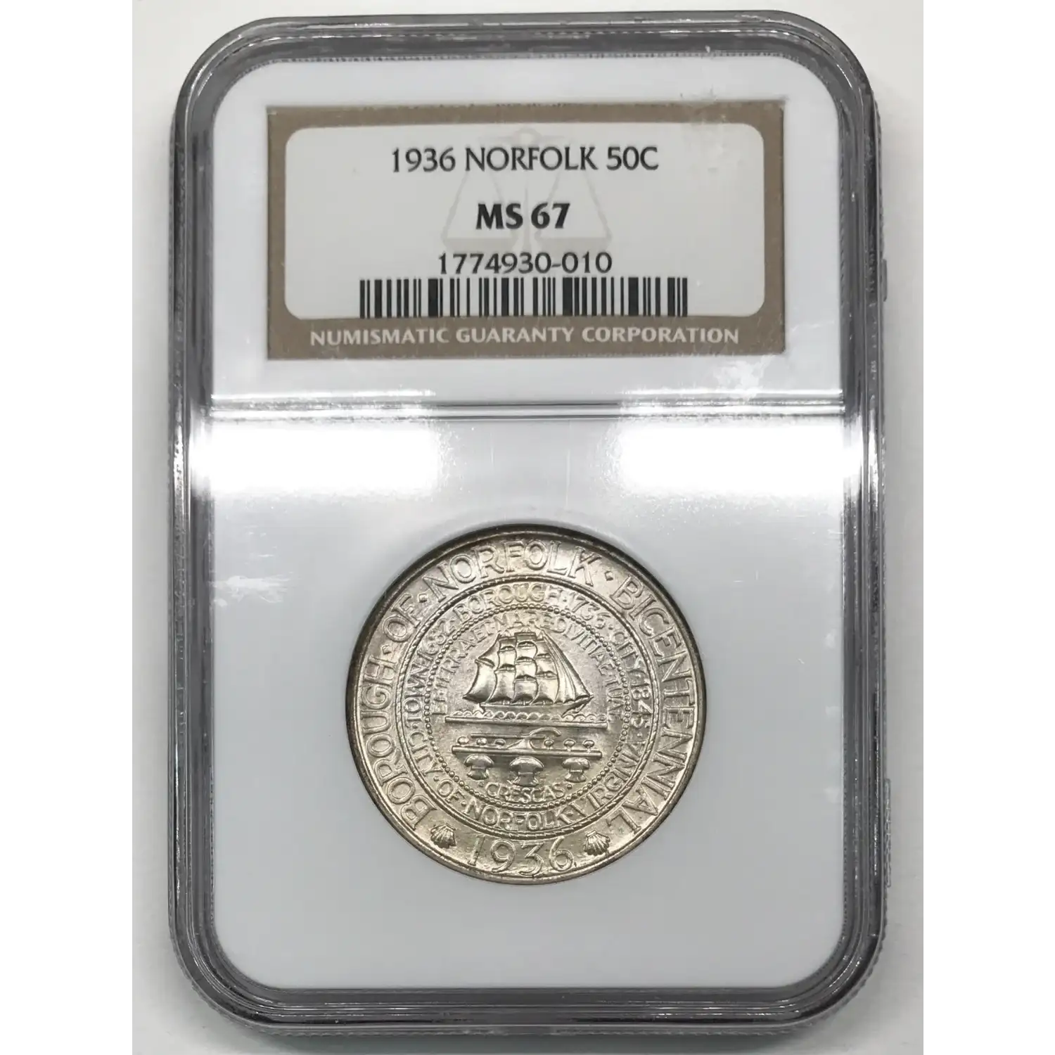 1936 Norfolk Virginia Bicentennial Commemorative Half Dollar NGC MS-67