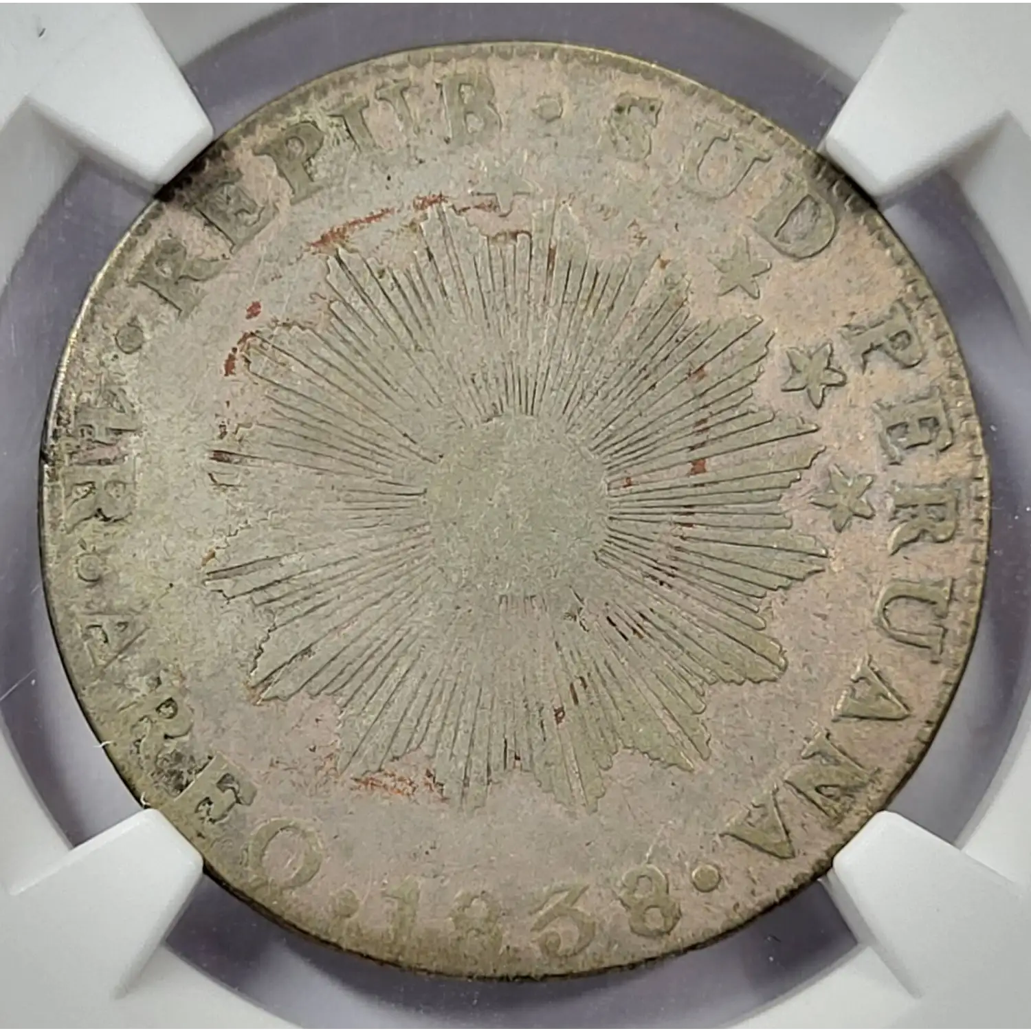 1838-AREQ MV PERU Silver 4 REALES NGC F-12 South Peru