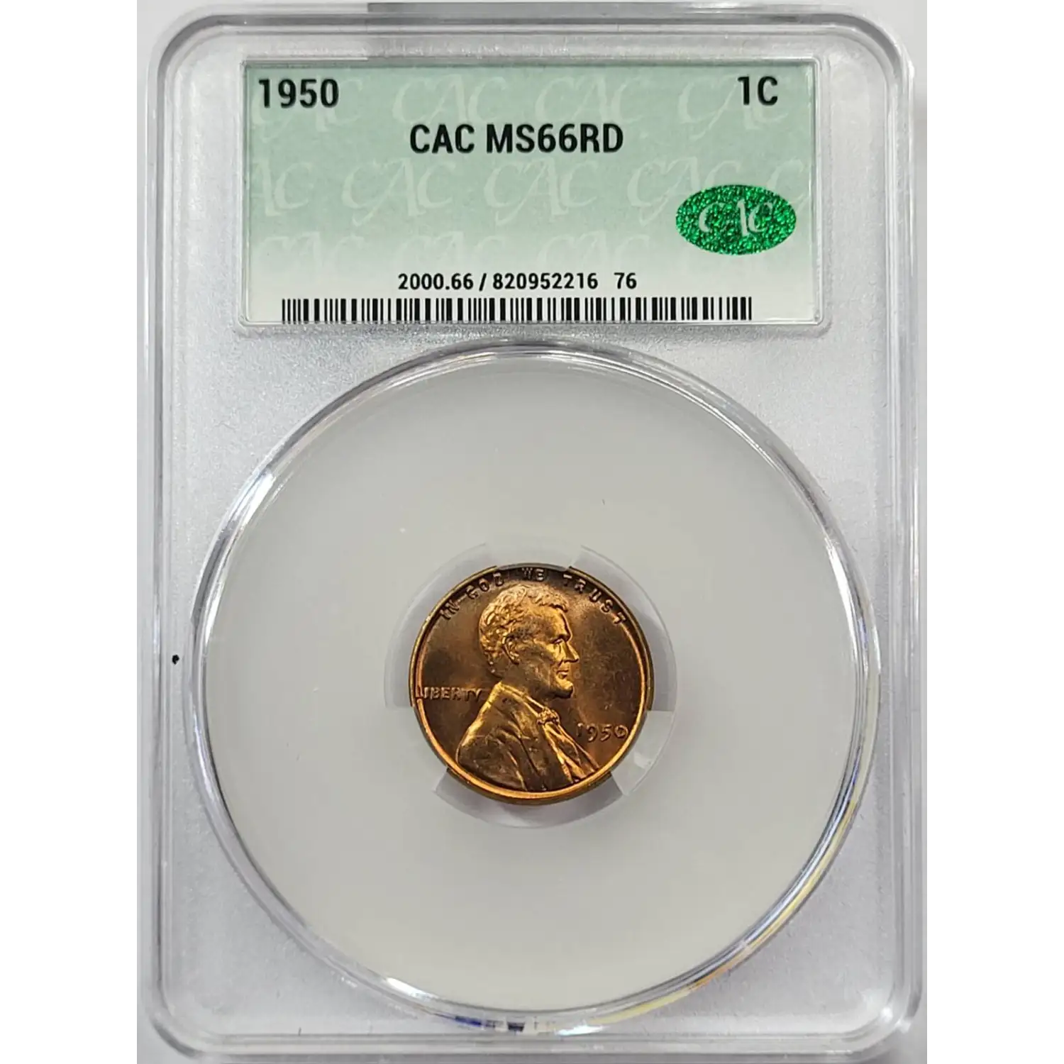 1950 Lincoln Wheat Cent CACG MS 66 RD CAC