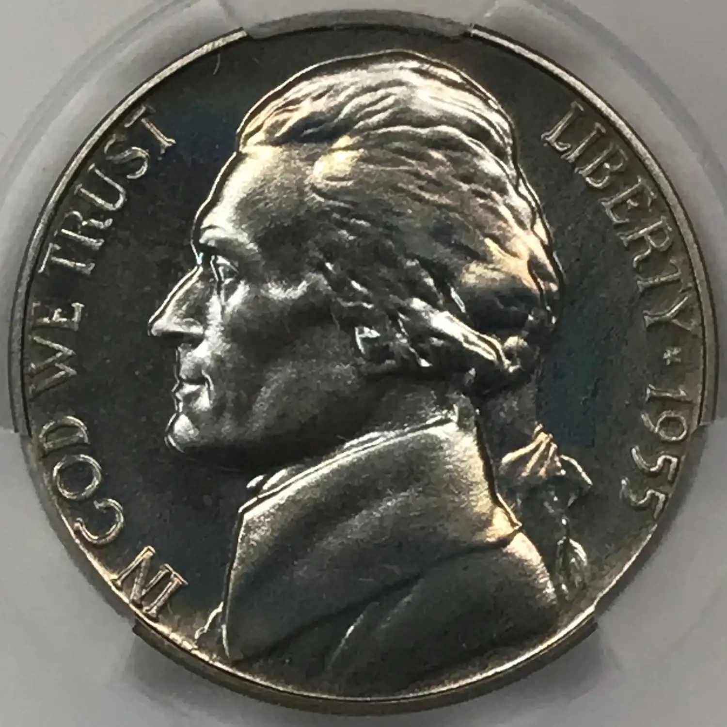 1955 Proof Jefferson Nickel CAC Grading (CACG) PR 66 - Rainbow Toning