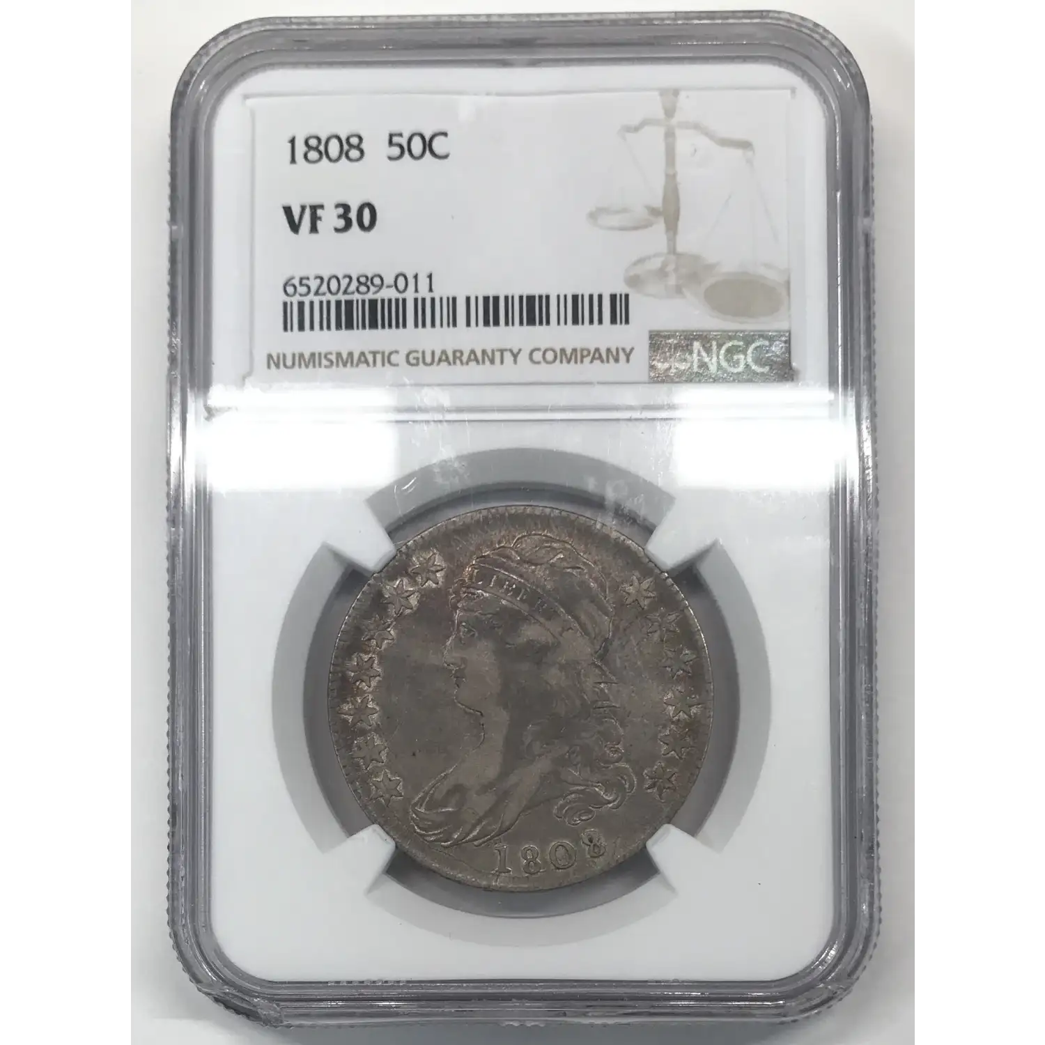 1808/7 O-101 Capped Bust Lettered Edge Half Dollar NGC VF-30