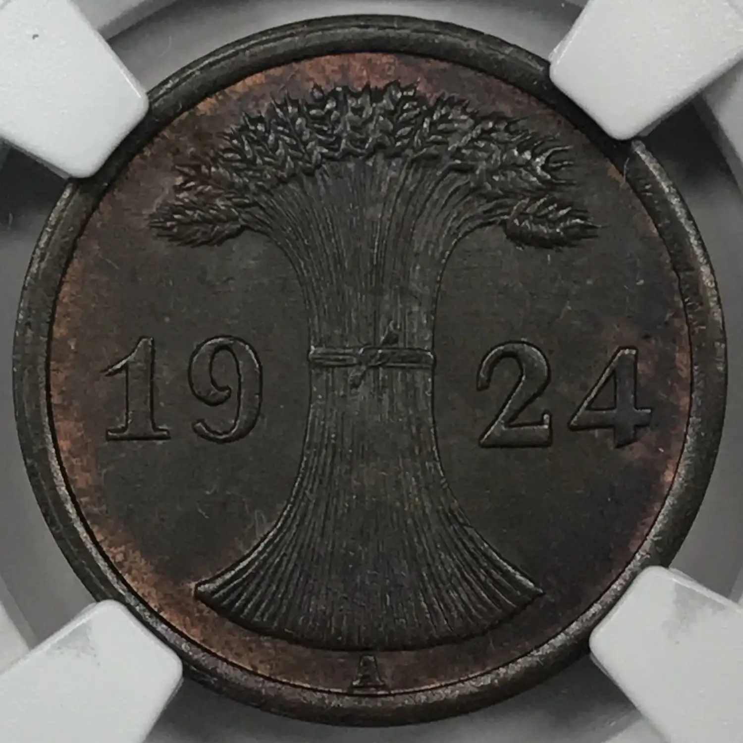 1924-A GERMANY WEIMAR REPUBLIC Bronze 2 RENTENPFENNIG (2P) NGC MS-64 BN - KM#31