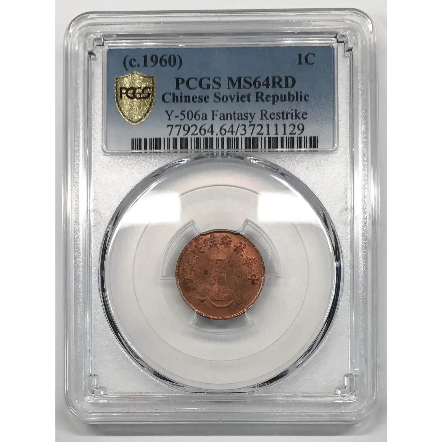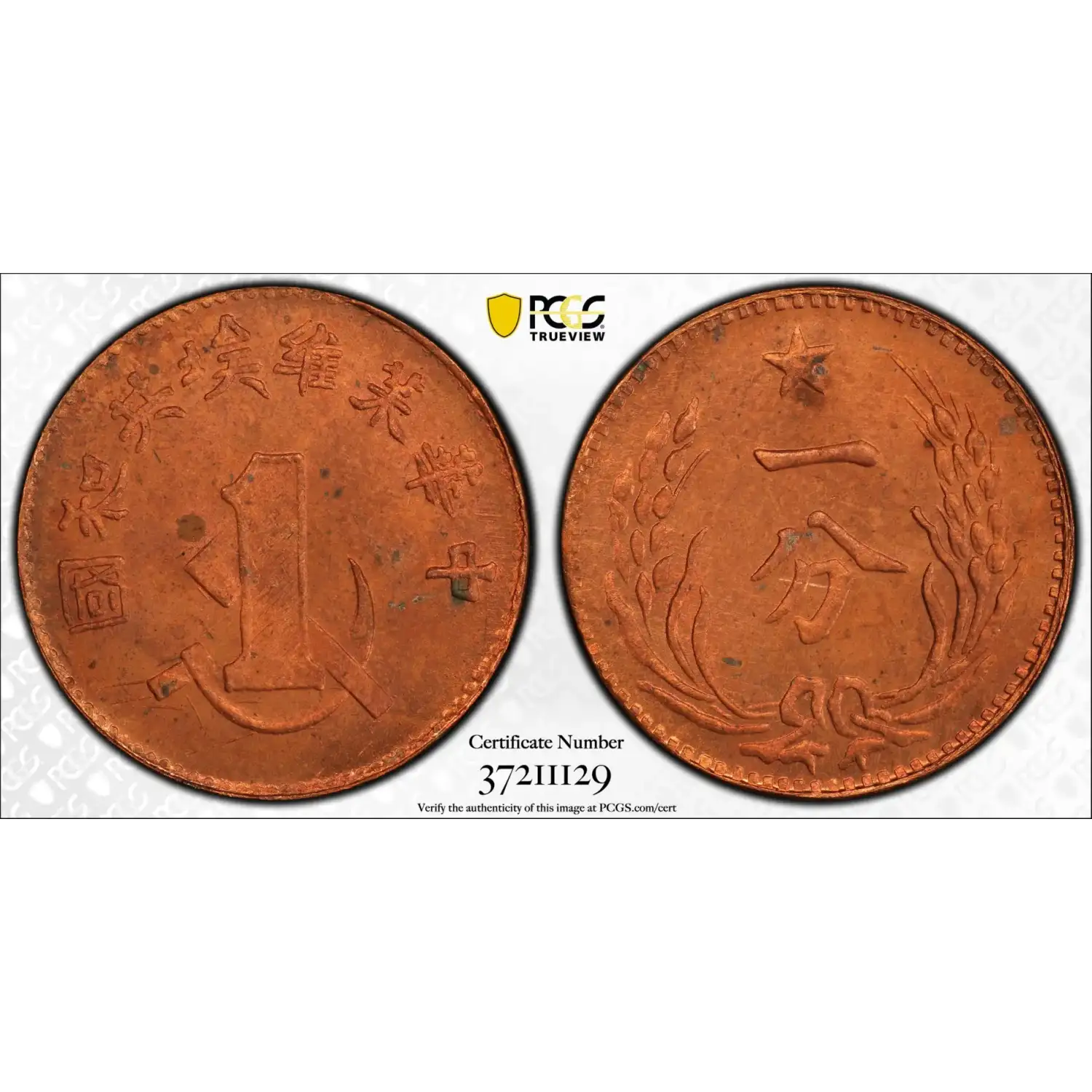 c. 1960 Chinese Soviet Republic Copper 1 Cent/Fen PCGS MS-64 RD - Y-506a Fantasy Restrike