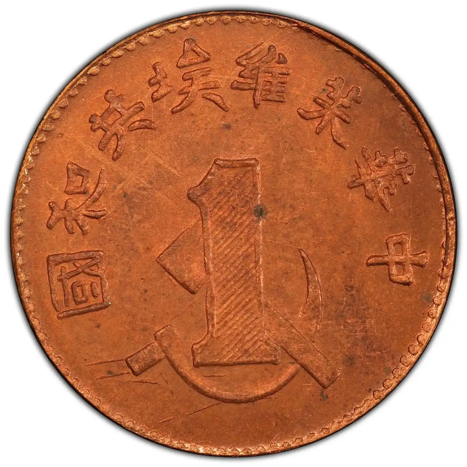 c. 1960 Chinese Soviet Republic Copper 1 Cent/Fen PCGS MS-65 RD - Y-506a Fantasy Restrike